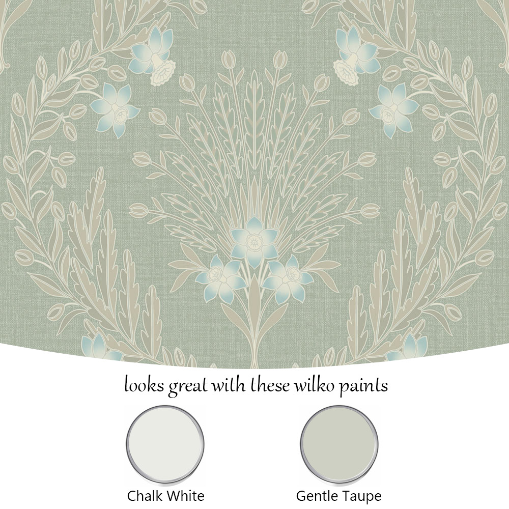 Embrace the Arts &, Crafts movement with this Grandeco Flora Damask Wallpaper in a calming sage green. Inspired by springtime, its delicate motifs will refresh any room. This textured, blown vinyl wallpaper boasts a four-wall design, perfect for lounges, kitchens, or dining areas. Its robust nature makes it ideal for disguising minor wall imperfections and cracks. A traditional paste-the-paper application ensures a straightforward installation.