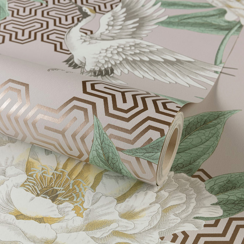 Bring serenity to your home with this elegant, Japanese-inspired wallpaper. Its intricate design, featuring grey flying cranes and a subtle metallic sheen, creates a calming atmosphere. Perfect for bedrooms, living rooms, or hallways, this versatile wallpaper offers both understated elegance and stylish impact – equally stunning as a feature wall or used throughout a room. The 150gsm spongeable paper is durable and easy to apply (paste the paper). With an offset design match and a 53cm repeat, each 10.05m roll ensures seamless coverage. Width: 53cm.