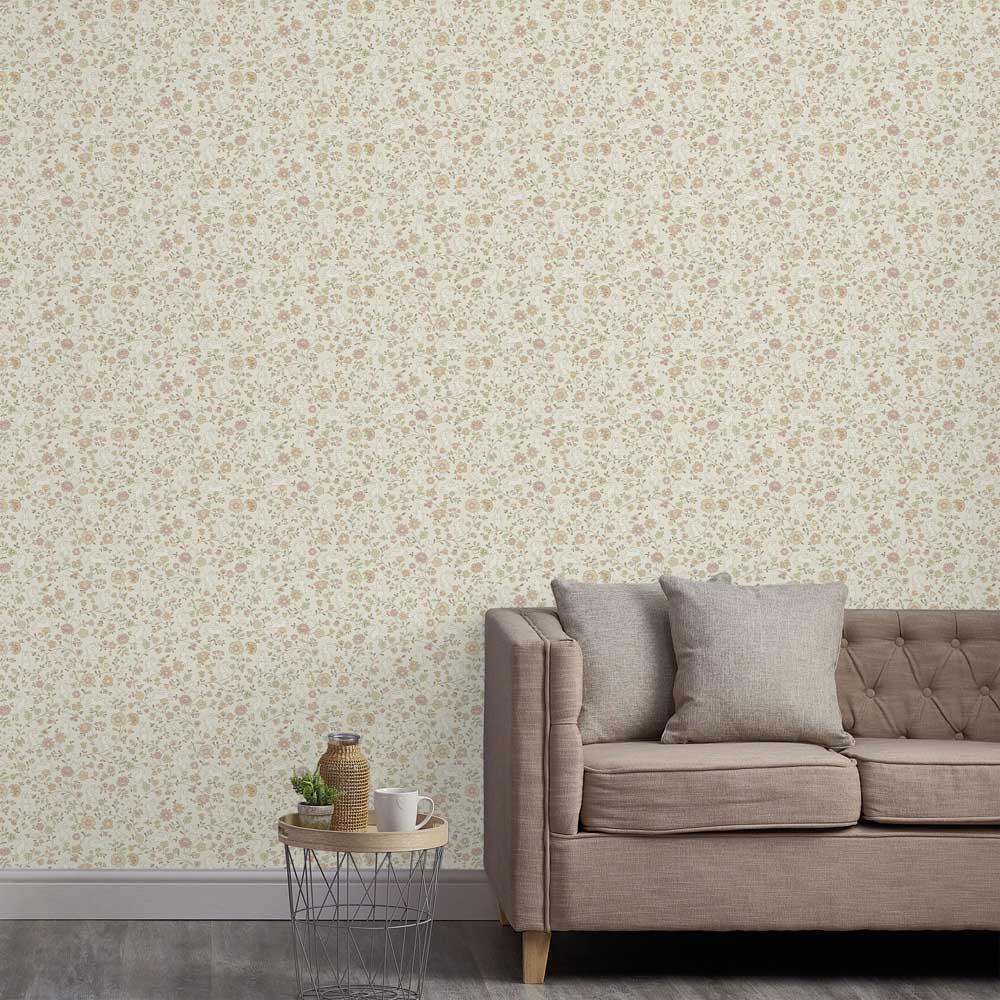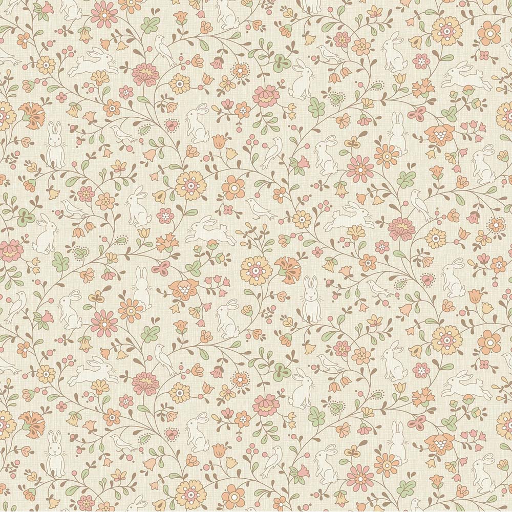Transform your child's room into a whimsical wonderland with the Liberty Floral Bunny Trail Nursery Wallpaper. Featuring charming animal prints of rabbits and birds on blossoming branches in fresh pastel hues of green, pink, purple, and beige, this textured beige wallpaper evokes a romantic, nostalgic feel. Imagine a floral tapestry across your walls. A perfect choice for a children's bedroom, this paste-the-paper wallpaper offers exceptional quality.