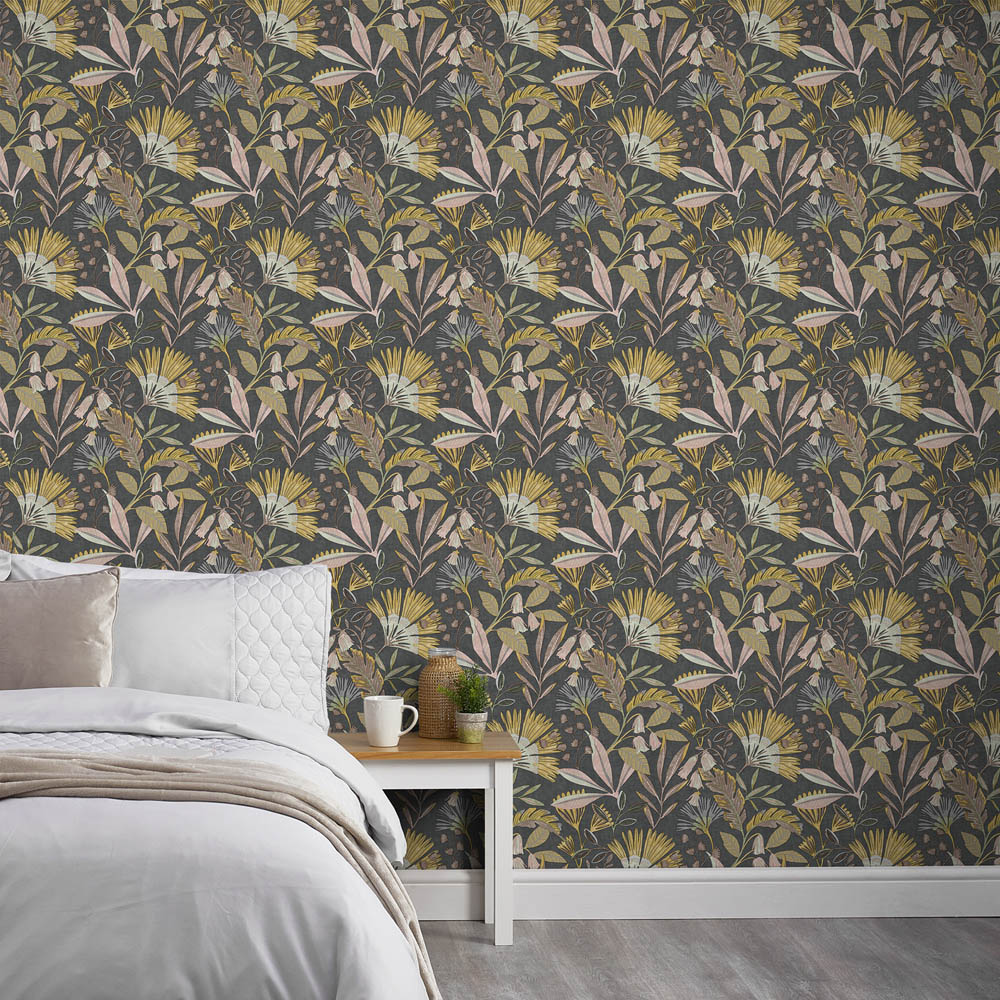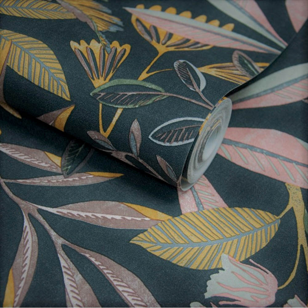 Unleash the vibrant energy of the tropics with Grandeco Matisse Tropical Leaves Textured Black and Pink wallpaper! This statement piece features playful, refined floral and leaf designs, accented with bright pops of orange, green, and blue. Perfect for adding a modern touch to any interior, this vinyl wallpaper is easy to apply using a paste-the-paper method. Bring the lush beauty of a rainforest to your walls with this eye-catching design.