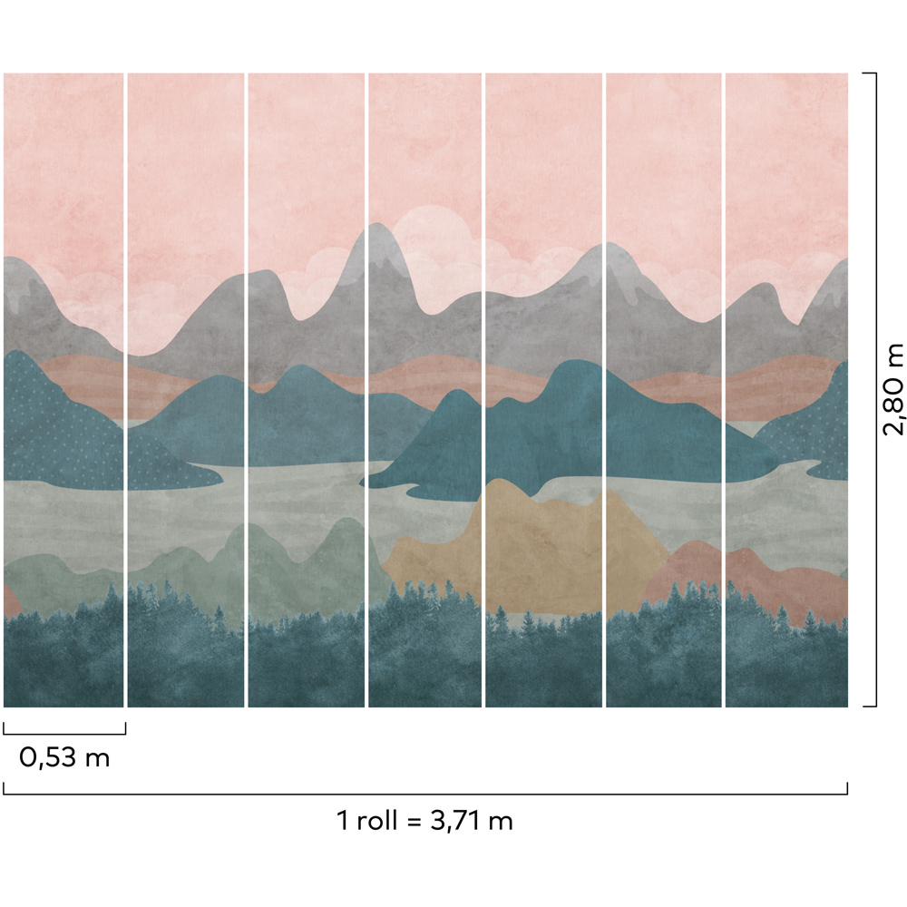 Transform your space with this stunning Mountains Textured Multicolour Mural. Evoking the warmth of a late summer evening as the sun dips behind majestic peaks, this wallpaper is perfect for creating a tranquil atmosphere in your living room or bedroom. Effortlessly stylish, its highly detailed, realistic design adds real character to any interior. Installation is simple with a paste-the-wall application, and the seven panels are easily trimmed to perfectly fit your wall. Each panel measures 53cm wide by 2.8m high, resulting in a total mural size of 3.71m wide by 2.8m high. Light and scratch-resistant, and easy to clean, this durable mural will be a cherished feature of your home for years to come – the ideal choice for a vibrant living space.