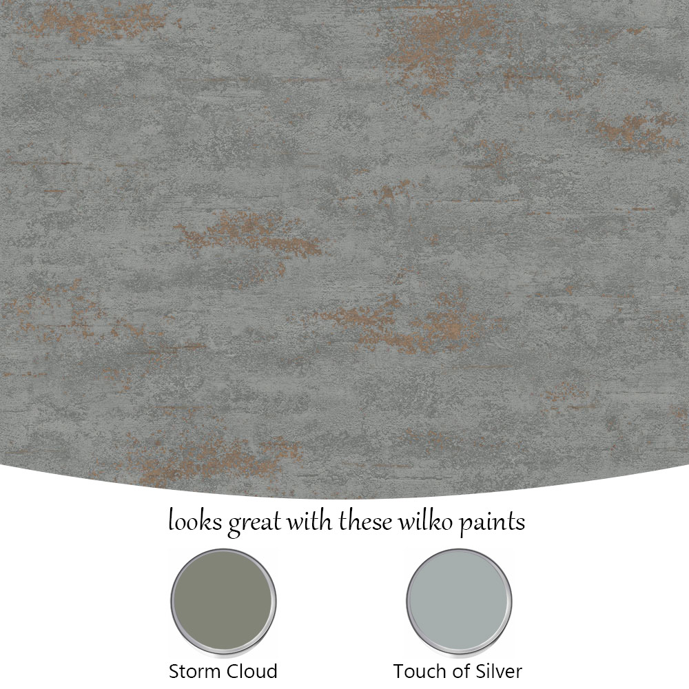 Escape to the lunar landscape, right from your home, with Grandeco',s On The Rocks wallpaper. This stunning charcoal grey and copper design boasts a blown vinyl finish, creating a textured, distressed concrete effect with metallic highlights. Inspired by the abstract beauty of space, it',s the perfect choice for adding industrial chic to any room. Easy paste-the-wall application makes it a simple DIY project, cleverly concealing minor wall imperfections.