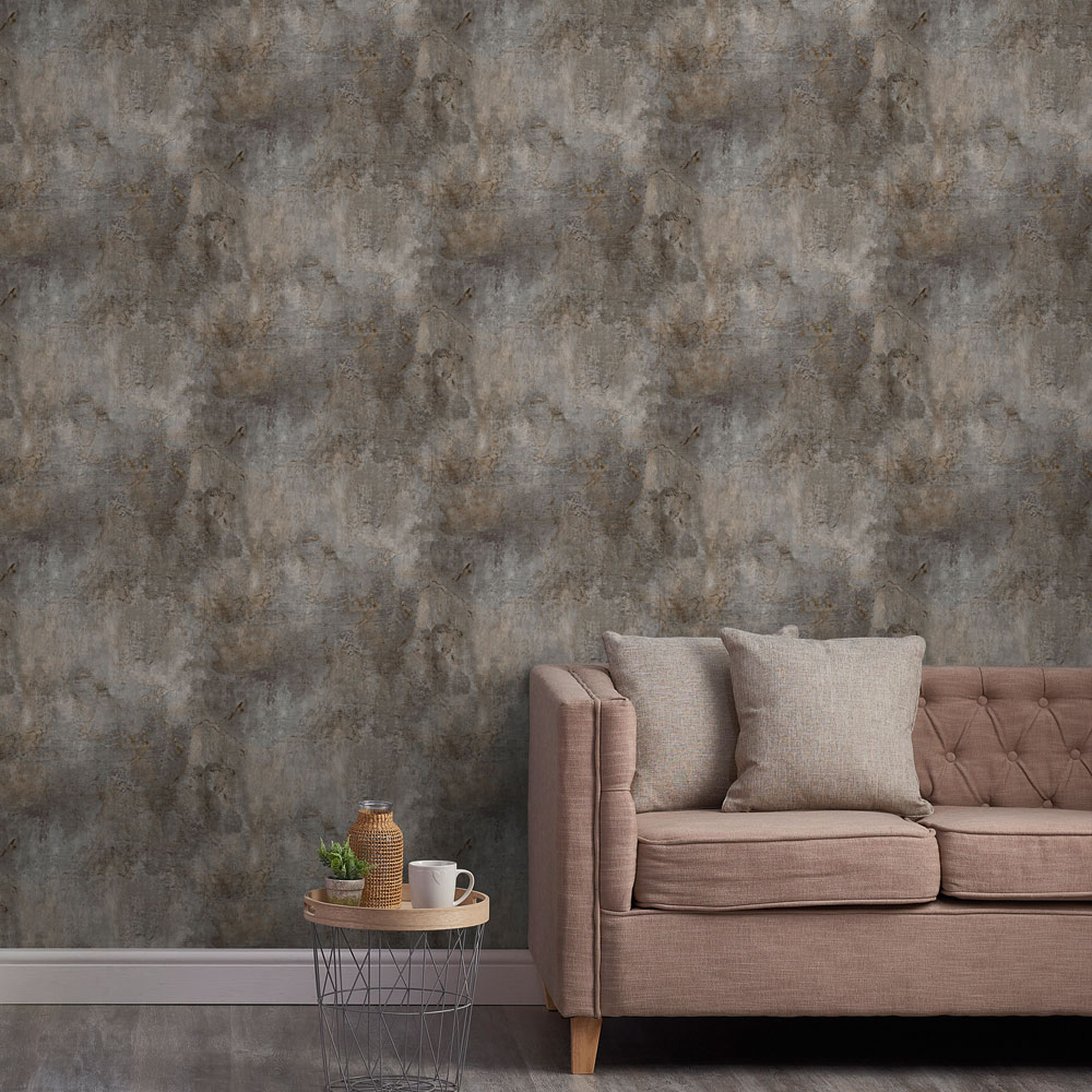 Elevate your interior with the Grandeco Plaster Patina Castello Neutral Wallpaper, a collaboration between Grandeco Wall Fashion Group and Paul Moneypenny, the renowned British TV personality and ',King of Wallpaper',. Paul',s expertise shines through in this unique, accessible, and easy-to-apply collection. Inspired by his eclectic style, the design features industrial textures in blue-grey colour palettes, accented with metallic or gold highlights, for a contemporary, minimalist feel. The photorealistic concrete effect, blended with soft brushed textures in warm neutral tones, beautifully mimics distressed fresco walls. A plaster-style embossing enhances the realism. This versatile design works equally well as a statement piece or blended seamlessly into any room',s décor.