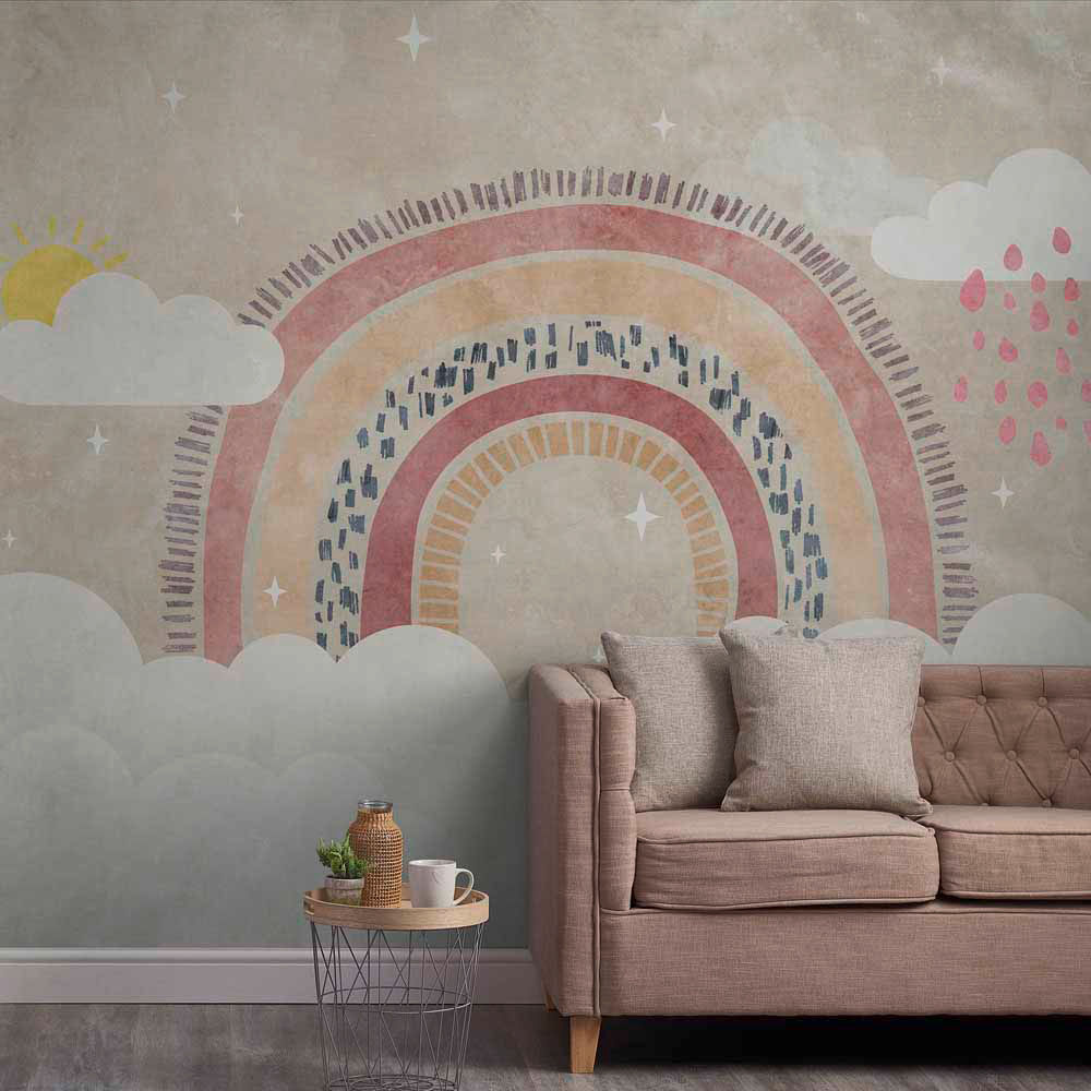 Transform your space with this Grandeco 7-lane wall mural, featuring a rainbow in delicate nude shades. Perfect for Scandinavian or bohemian interiors, its creative design complements any room, proving particularly popular in girls', bedrooms. Effortlessly removable for future style updates, this wallpaper boasts a simple paste-the-wall application, delivering impactful results. The highly detailed, realistic design creates a captivating atmosphere, allowing you to express your unique style. Easily adaptable to your wall',s dimensions by matching the mural to its width, the design can be repeated using multiple rolls. Enjoy this mural for years to come, it',s light and scratch-resistant, and easy to clean – washable, making it suitable for bedrooms, living rooms, kitchens, bathrooms, or nurseries. Each 53cm wide roll measures 20.21m in length, providing a 371cm wide design repeat at a height of 2.8m, easily trimmed to suit shorter walls. Paste the wall application, straight match. The ideal solution for a vibrant, stylish room.