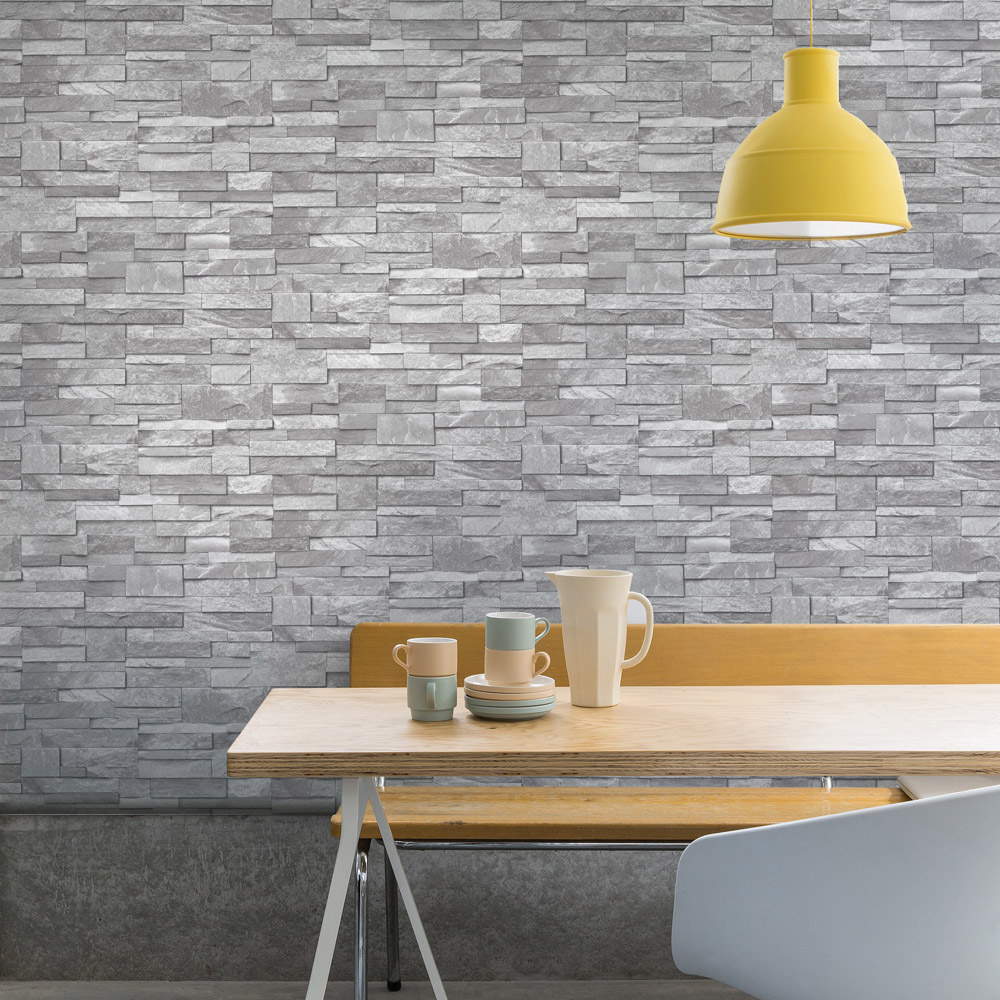 Elevate your interior with the Grandeco Stacked Stone Slate Textured Blown Vinyl Grey Wallpaper. Its photo-realistic design and raised texture create a striking 3D effect, bringing depth and visual interest to any room. The substantial roll offers ideal coverage for uneven walls, ensuring a seamless finish. This durable wallpaper is perfect for busy homes.