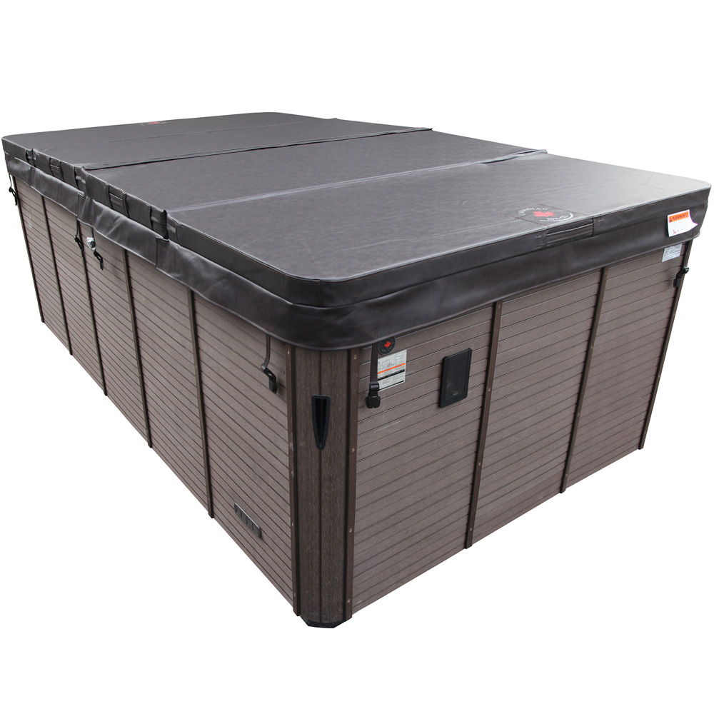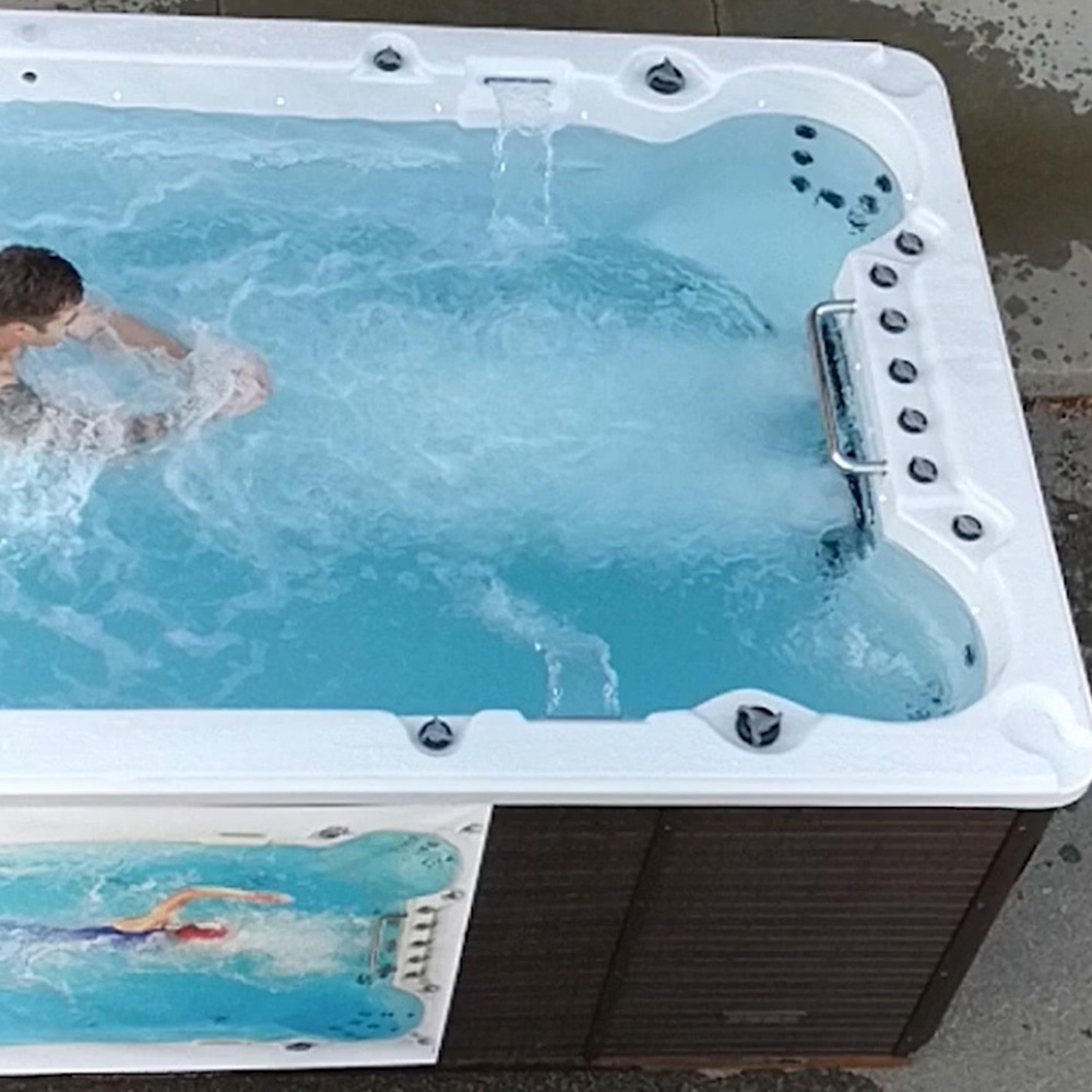 Experience the ultimate at-home aquatic centre with the Great Lakes St. Lawrence Swim Spa. Perfect for a refreshing swim, invigorating aqua aerobics, or pure relaxation, this all-in-one system delivers an unparalleled experience. Three river resistance jets create a customizable swim lane, allowing you to adjust the water flow for any activity, from a gentle jog to intense resistance training. Unwind after your workout in one of five multi-jet captain's chairs, enjoying a soothing massage. The integrated digital audio system, pop-up speakers, perimeter multi-coloured LED lighting, and two cascading waterfalls complete the luxurious ambiance. This spa boasts a sleek design and high-end features, offering unbeatable value and transforming your backyard into a personal oasis. Dimensions: 390 x 228cm.