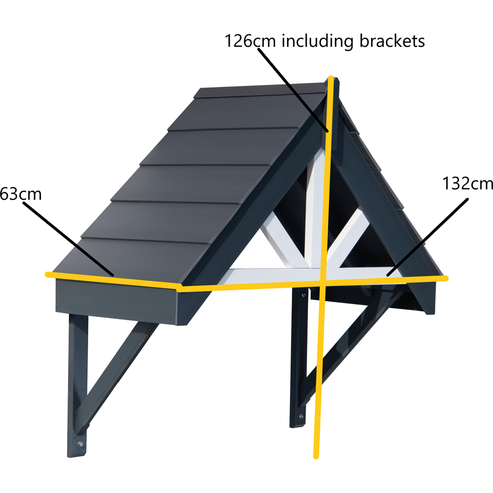Enhance your home',s entrance with the Deluxe Grey Door Canopy. Crafted from a robust blend of engineering polymers – a material renowned for its use in architectural projects – this canopy offers exceptional strength and weather resistance, surpassing the limitations of traditional timber. Its pre-finished, UV-stable coating ensures lasting colour vibrancy, eliminating the need for ongoing maintenance. Designed to perfectly complement standard UK front doors, it includes all necessary wall fixings and even a drill bit for straightforward home installation. Overall dimensions, including brackets, are H126 x W132 x D63cm, with a 105cm distance between brackets.