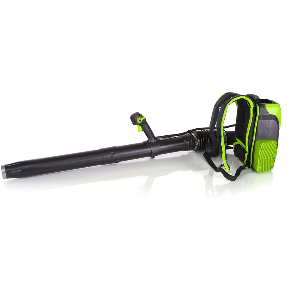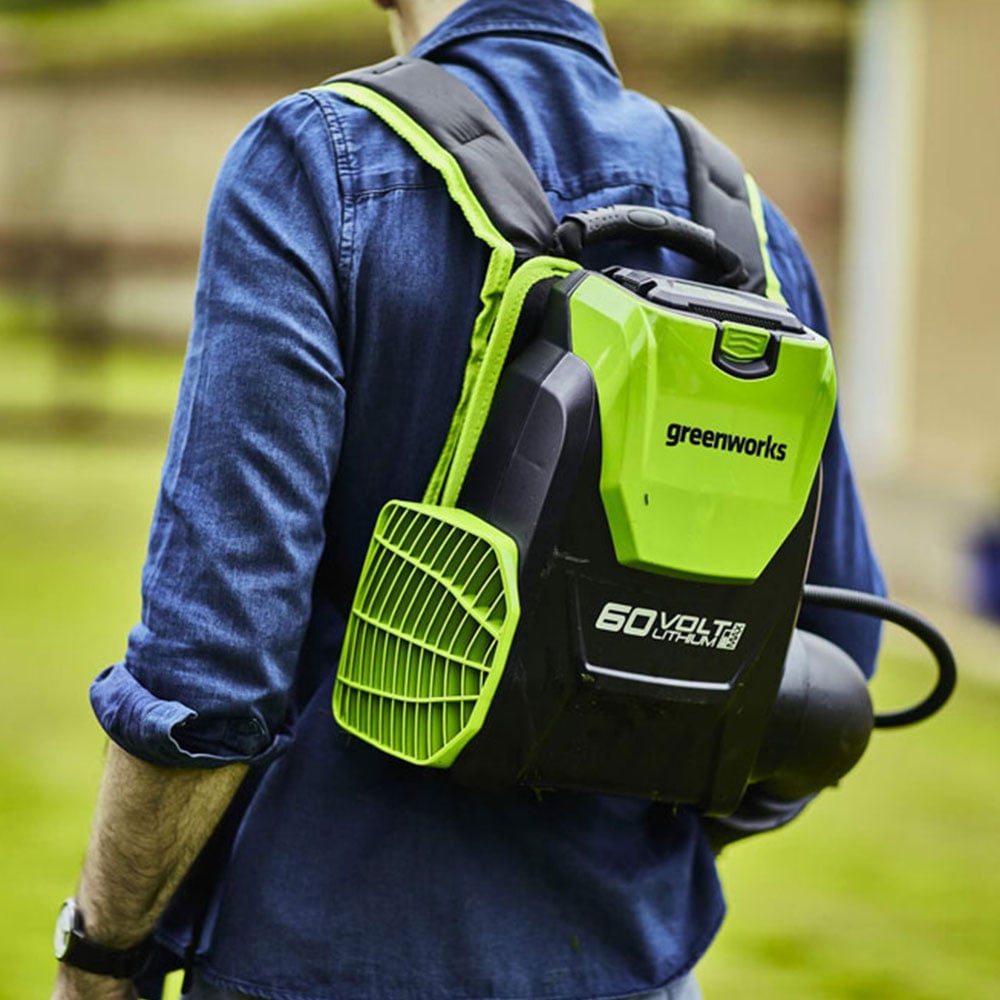 Experience effortless yard cleanup with the Greenworks Backpack Blower. Its powerful brushless motor delivers variable speed, cruise control, and a boost function for superior performance. The 139mph airspeed quickly clears leaves and debris, while the padded, adjustable harness ensures comfortable operation.