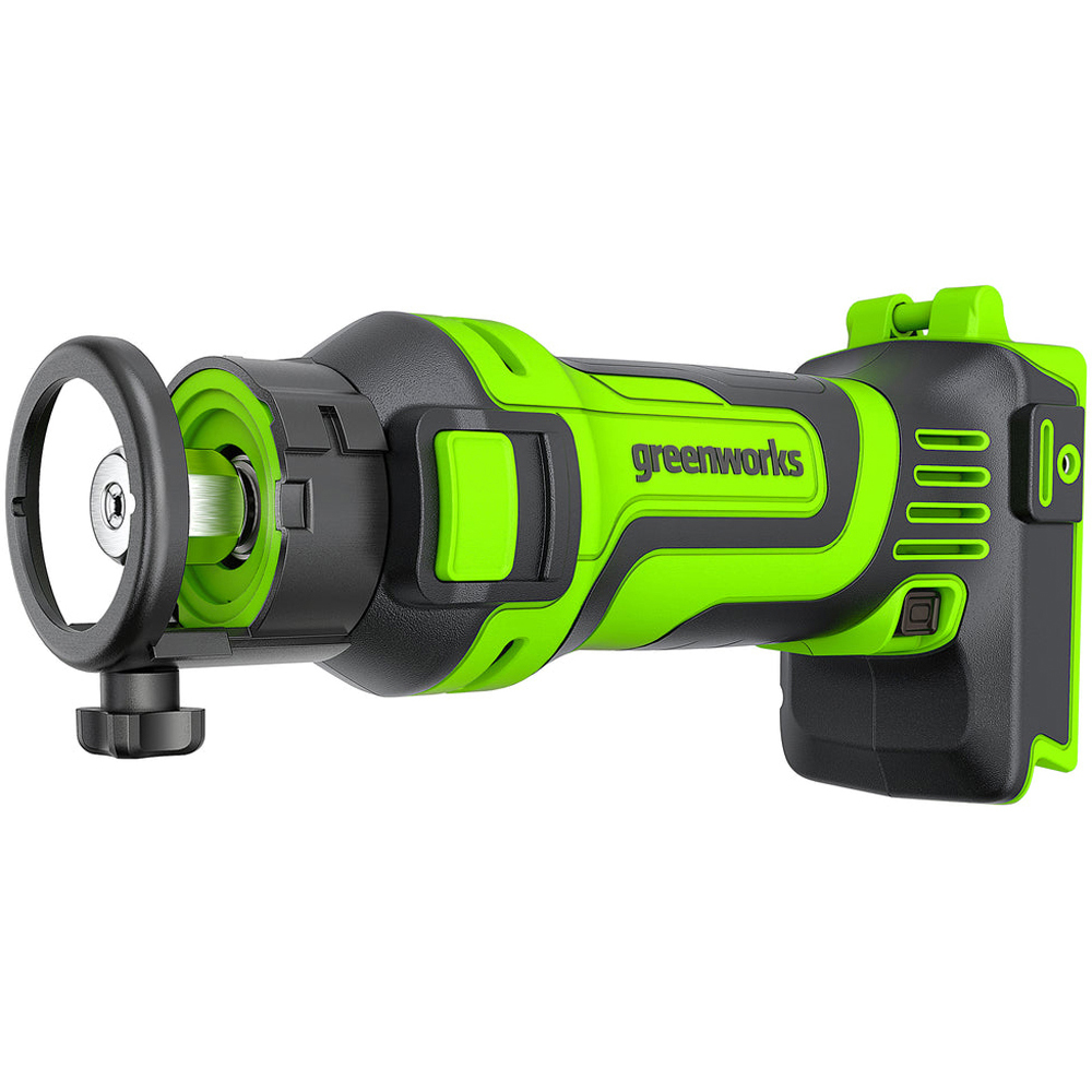 Tackle a variety of cutting tasks with the Greenworks 24V Cordless Speed Saw. Boasting a high-performance motor that delivers speeds of up to 27,000 RPM, this tool ensures swift, clean cuts in materials like plasterboard and plywood. Designed for versatility, it accepts both 1/4” and 1/8” bits, catering to diverse applications.