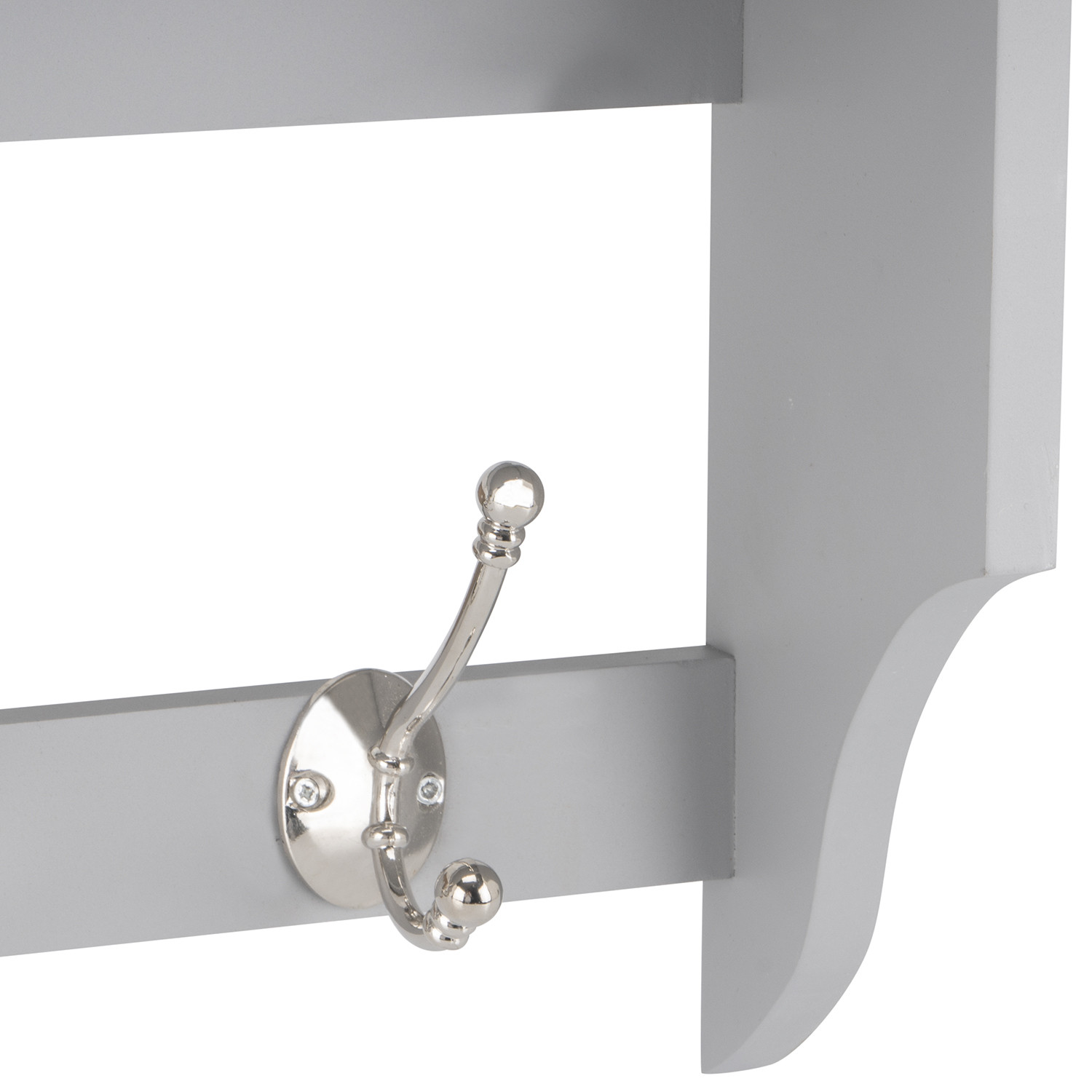 Grey 4 Hook Wooden Coat Rail with Shelf