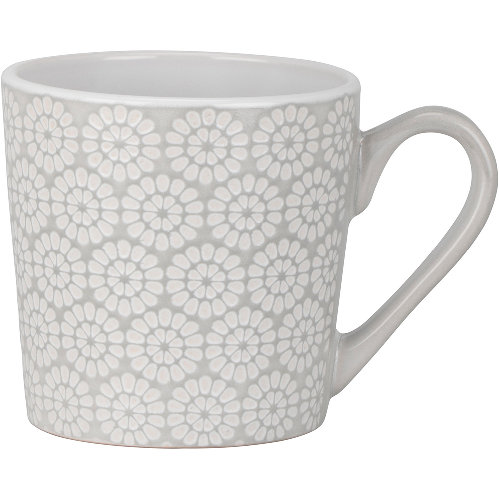 Embrace everyday charm with the Geometric Blossom Mug. Its sweet, modern geometric floral design is beautifully complemented by an embossed, reactive glaze, adding delightful texture and visual interest. The elegantly curved, slim handle enhances its appeal. Crafted from durable stoneware, this mug is both microwave and dishwasher safe.