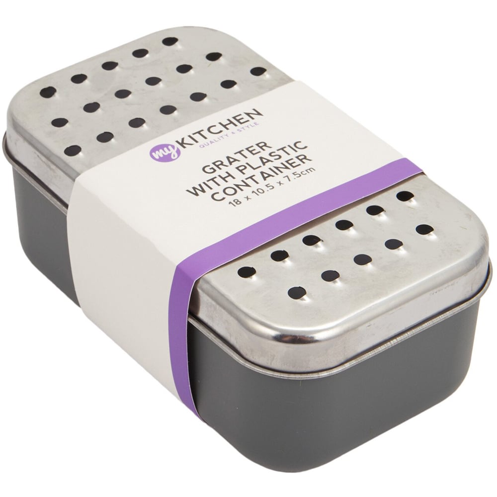 This grater and container is an essential addition to any kitchen. The grater fits securely onto a container, keeping grated ingredients tidy and contained for ease of use. Convenient for any kitchen, and ideal for grating vegetables and cheese, it ensures your kitchen counter remains tidy whilst cooking.