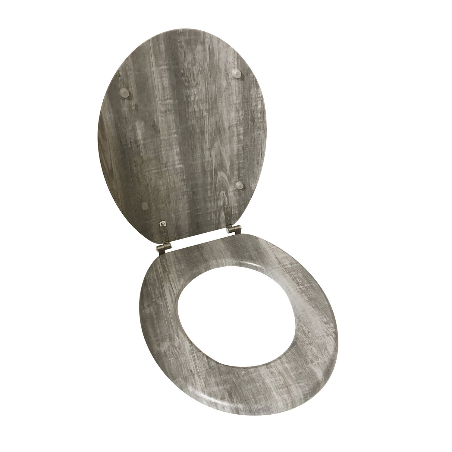 This Silver Greywood toilet seat offers a rustic, wood-look aesthetic that complements diverse bathroom styles. Its durable MDF construction ensures practicality, and its simple design brings a natural beauty to your bathroom decor. A convenient and stylish addition to any home.