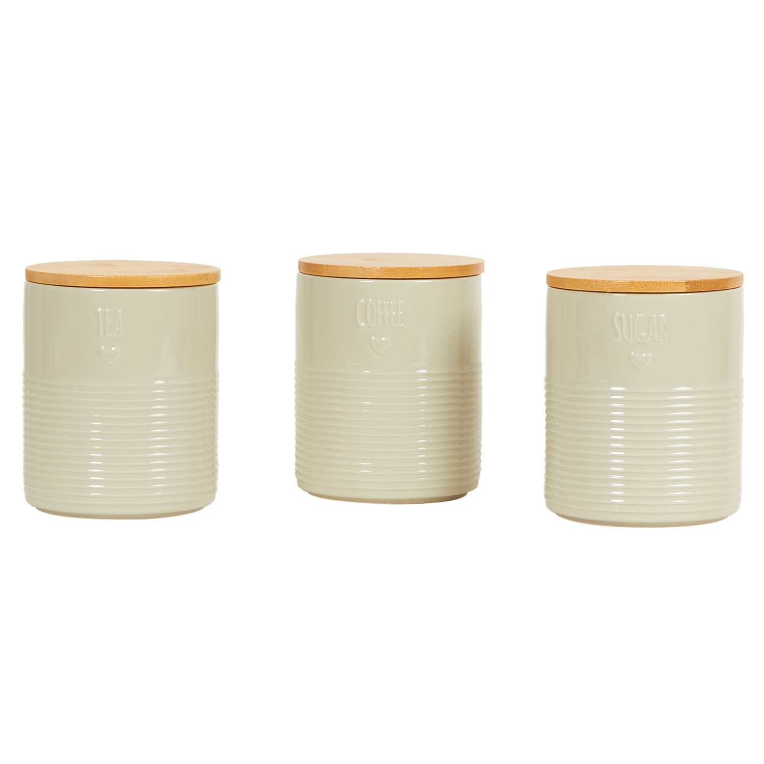 Bring a touch of rustic charm to your kitchen with this delightful Set of 3 Embossed Mushroom Canisters. Clearly labelled with ‘tea’, ‘coffee’ and ‘sugar’, they offer a practical and pleasing way to store your favourite hot drink essentials. The canisters feature a beautifully detailed, ribbed texture and are finished with secure, silicone-sealed bamboo lids – designed to maintain freshness and flavour. These charming containers are perfect for adding a homely feel to any contemporary kitchen space.