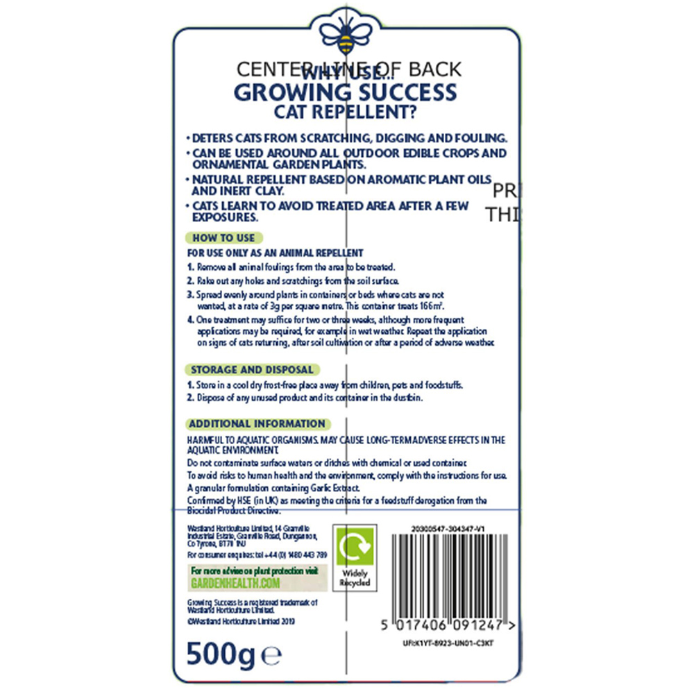 Keep cats away from your precious plants with Growing Success Cat Repellent. This 500g spray, formulated with aromatic plant oils, creates an unpleasant scent that deters cats from scratching, digging, and fouling in your garden. Simply spray directly onto edible crops and other plants to protect them from feline damage. Ensure beautiful, thriving plants all season long. Always read the instructions on the packaging before use.