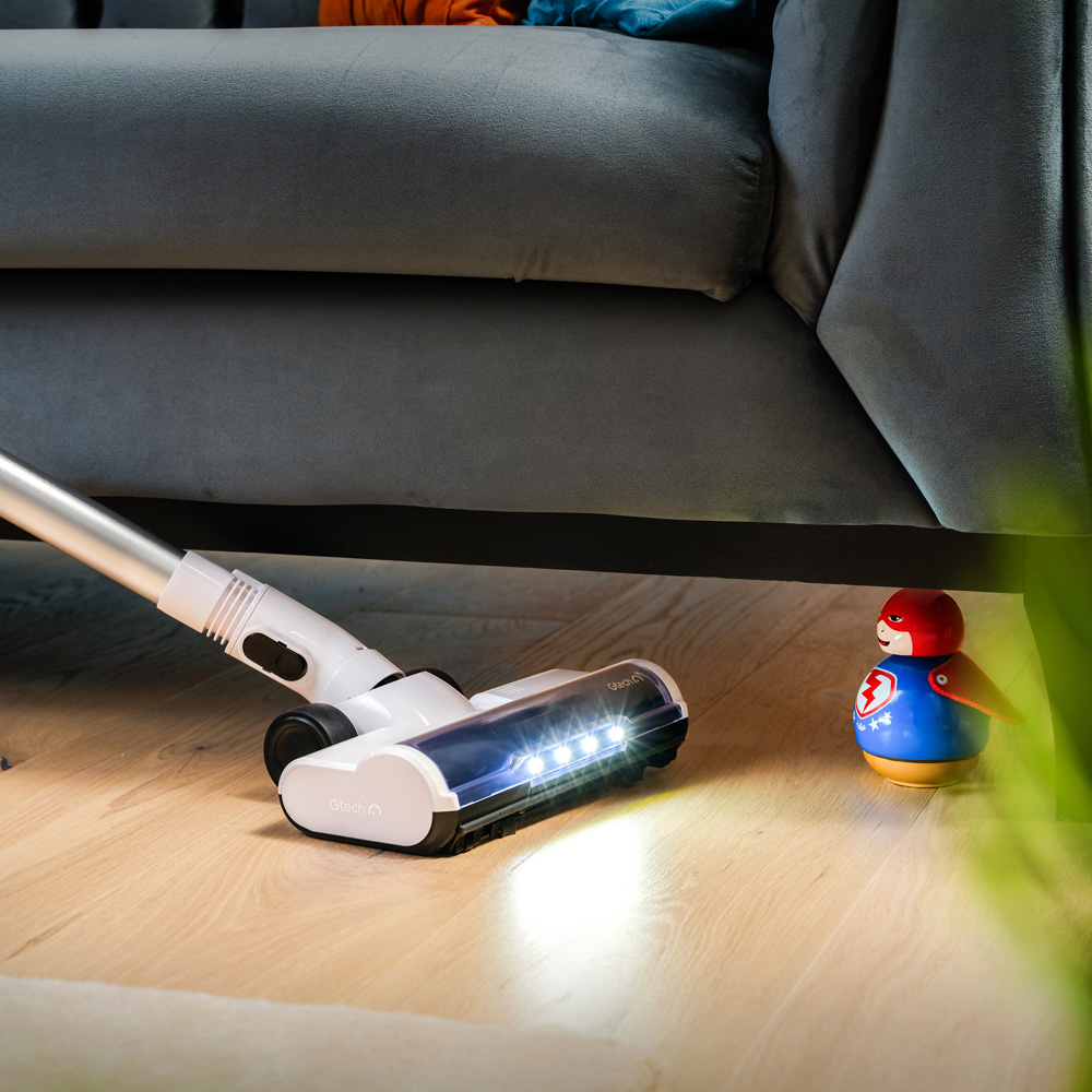 Effortlessly clean your home with the Gtech AirFOX Platinum 2-in-1 cordless stick vacuum. This powerful and adaptable cleaner tackles all surfaces, removing both large and small debris with every pass. Its 37V brushless motor delivers consistent suction, even on uneven floors. Enjoy versatile cleaning with three power modes and up to 80 minutes of runtime in upright mode, easily converting to handheld for cleaning cars, furniture, and more. A tangle-free brush bar and a wall-mounted charger, which also serves as convenient tool storage, complete this exceptional cleaning package.