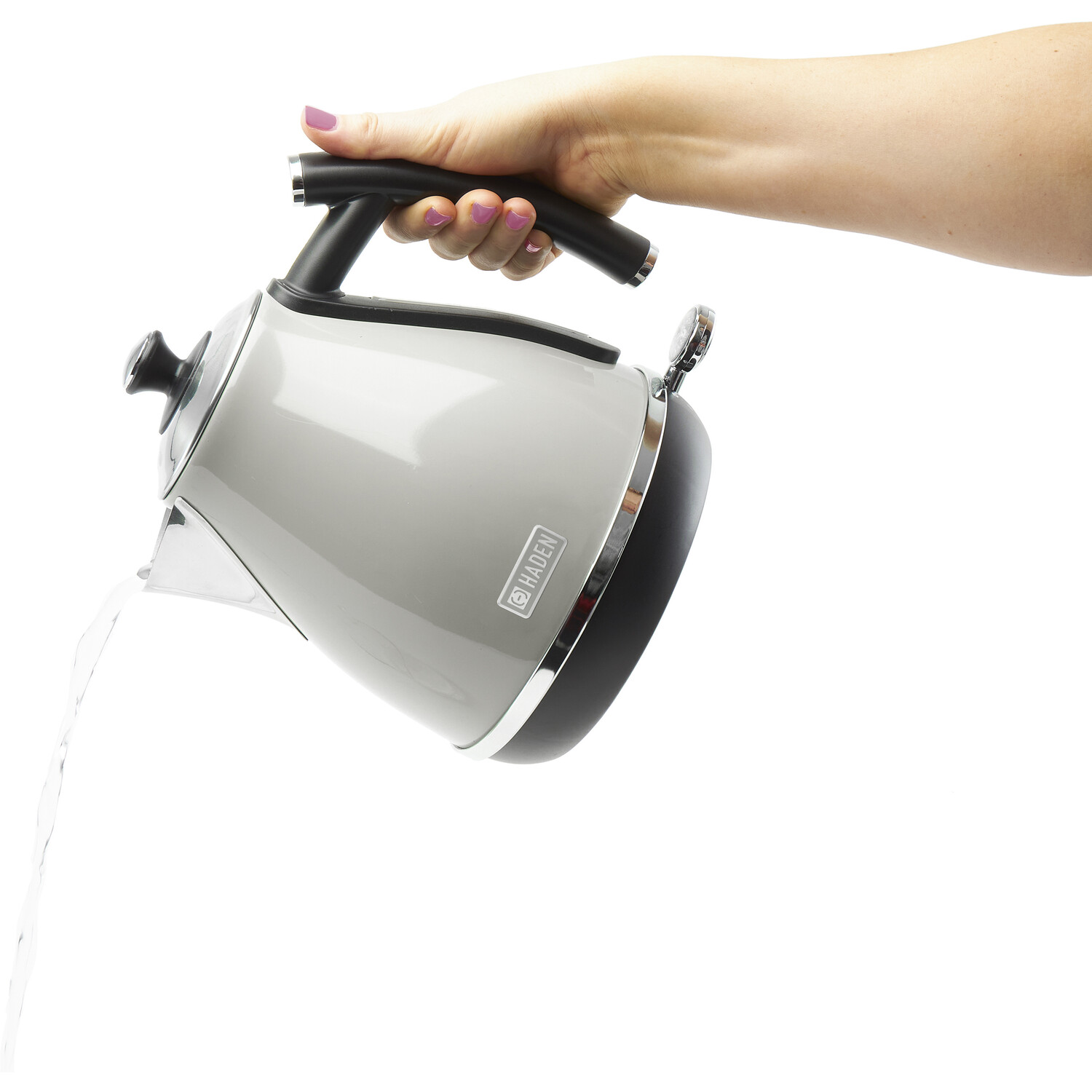 Elevate your kitchen with the Haden Cotswold Kettle – a stylish and efficient addition to any home. Boasting a generous 1.7-litre capacity, this kettle ensures you always have enough hot water for your daily brew. The integrated water window with scale allows for precise filling, while the illuminated indicator light signals when the water is ready. Effortless 360-degree rotation on its base simplifies use, and the ergonomic handle provides comfortable pouring. Practical features include boil-dry protection and convenient cord storage for a clutter-free countertop. A spare filter is included to maintain optimal performance. This practical and stylish kettle boils water rapidly and can be filled, emptied, and cleaned effortlessly. Make mornings easier and your kitchen more elegant with this premium kettle.