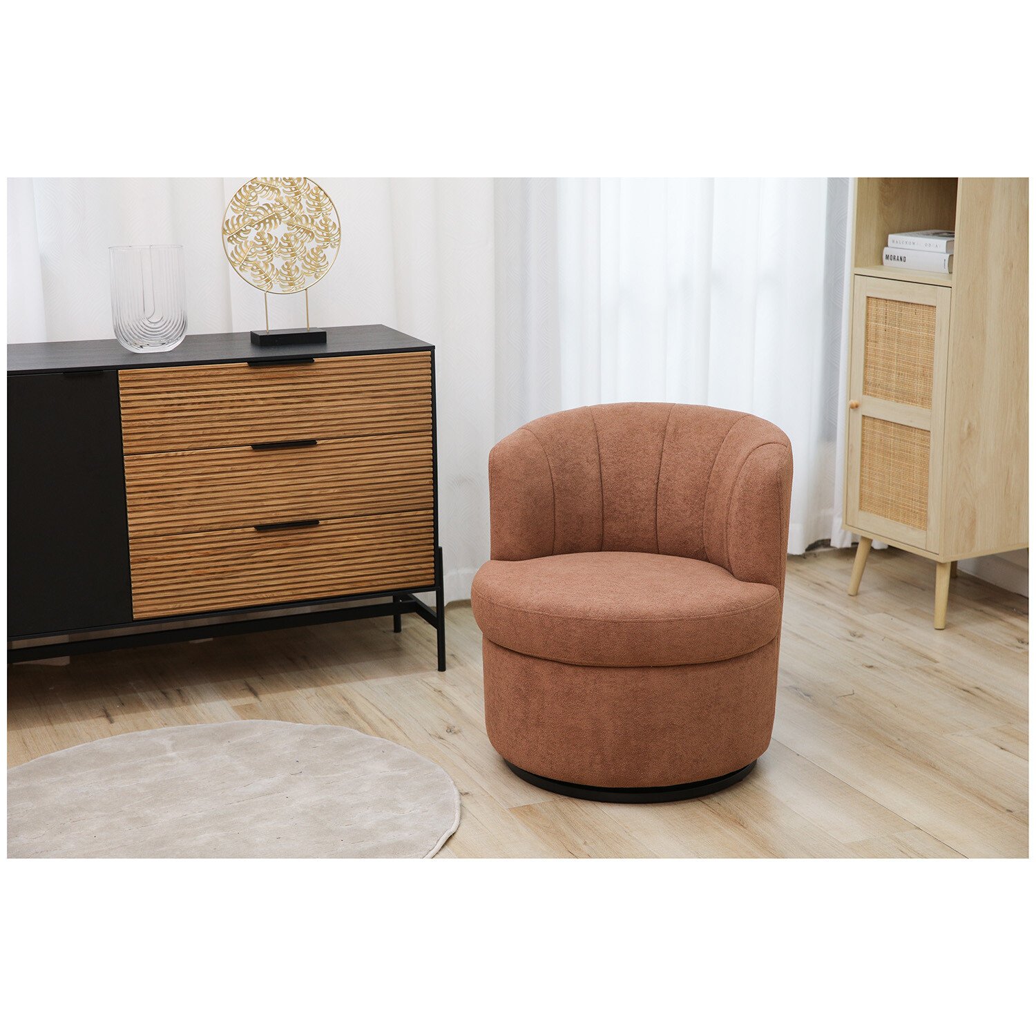 Elevate your living space with the Halle Brown Swivel Accent Chair. Designed for both comfort and style, this chair is upholstered in luxurious poly-linen fabric, adding warmth and sophistication to any room. Its smooth swivel function, along with a padded seat and backrest, ensures a cozy and relaxing experience. Pair it with your sofa and a matching coffee table to effortlessly enhance your home’s ambiance.