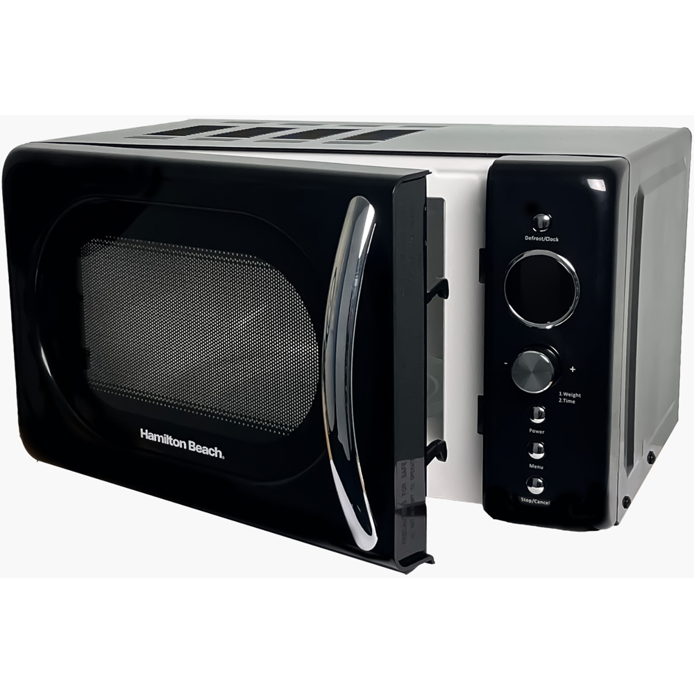 Upgrade your kitchen with the Hamilton Beach Black Microwave – a stylish and practical 20L model perfect for everyday cooking. Its 700W power, combined with energy-efficient technology, ensures impressive performance without compromising on sustainability. Eight pre-programmemed settings offer effortless cooking, from reheating leftovers to defrosting frozen meals. The glass turntable guarantees even heating, while the intuitive manual controls and quick start function make operation a breeze. A clear digital LED display keeps you informed, and a child lock adds an extra layer of safety. This microwave is your reliable kitchen companion, making mealtimes simpler and more enjoyable. This item is delivered direct to you from one of our suppliers, please see our Terms and Conditions for more details.