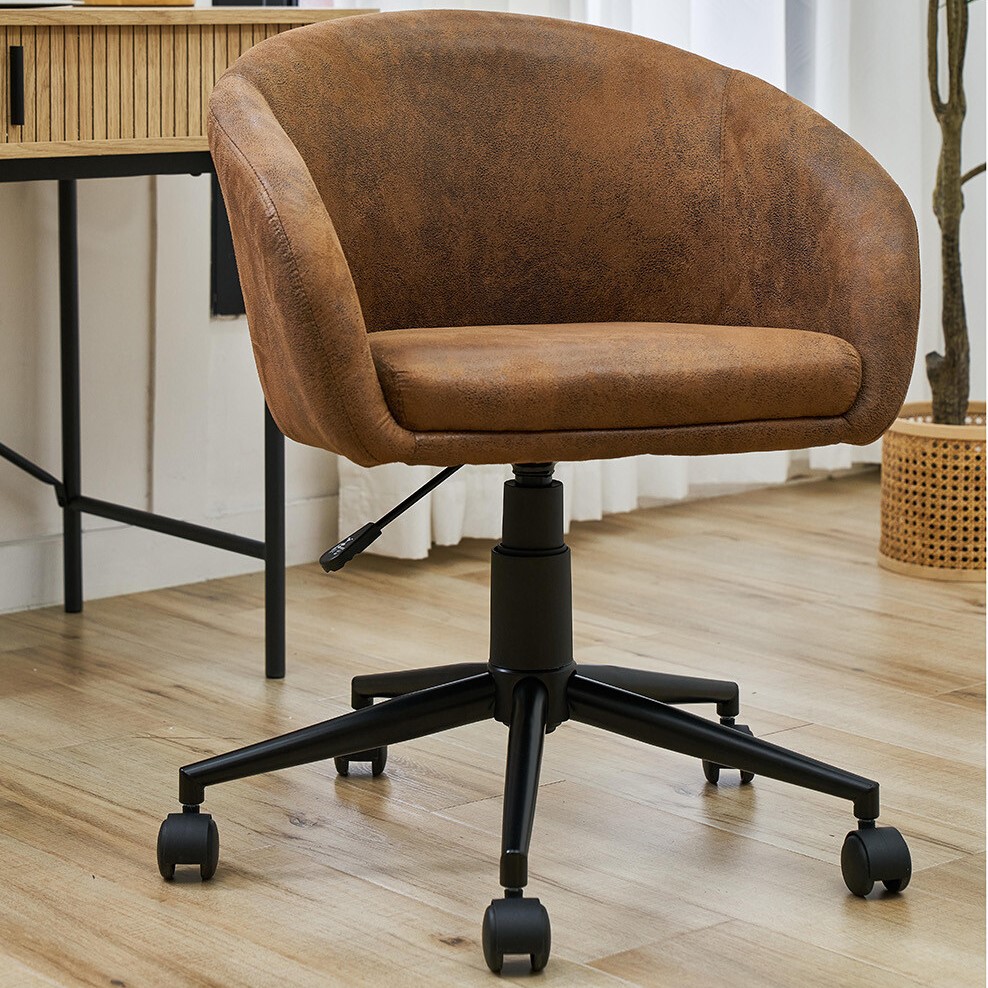 Indulge in comfort and style with the Hampton office chair. Crafted with luxurious brown faux suede, this chair boasts a modern design with a vintage appeal. Its padded seat ensures all-day comfort, perfect for home working, gaming, or pursuing hobbies. Effortlessly adjust the height to suit your desk, making it an ideal addition to any home office or dressing room.