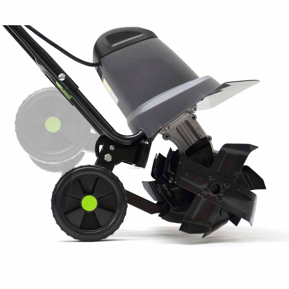 Experience exceptional soil cultivation with the Handy THET1400 Electric Tiller, driven by a powerful 1400w electric motor. The impressive 43cm working width allows for efficient tilling, while the removable hardened steel tines offer flexibility for various tasks. You can choose to operate with two, four, or six rotors, enabling you to optimize your work rate or navigate around delicate plants without causing damage. Designed for ease of use, this tiller features adjustable transport wheels for enhanced manoeuvrability. Its compact design and folding handle make storage effortless, fitting easily into crowded sheds. Weighing just 15kg, this high-performance tiller can till down to a depth of 20cm, and the generous 10-metre power cord provides ample reach for all your gardening projects.