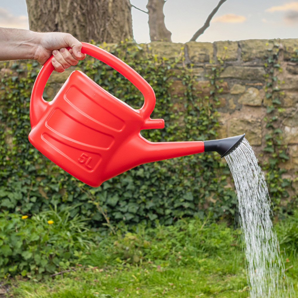 Nurture your garden with this brilliant red, 5-litre watering can from Afrapoco Ltd. Constructed from recycled plastic, this robust watering can is an environmentally conscious choice for all your plant care needs, indoors and out. Its durable polyethene body, created using injection moulding, features a wraparound handle and a long spout complete with a detachable rose head. This ensures accurate, gentle watering, ideal for delicate plants. Lightweight yet sturdy, it's an indispensable tool for every keen gardening enthusiast.