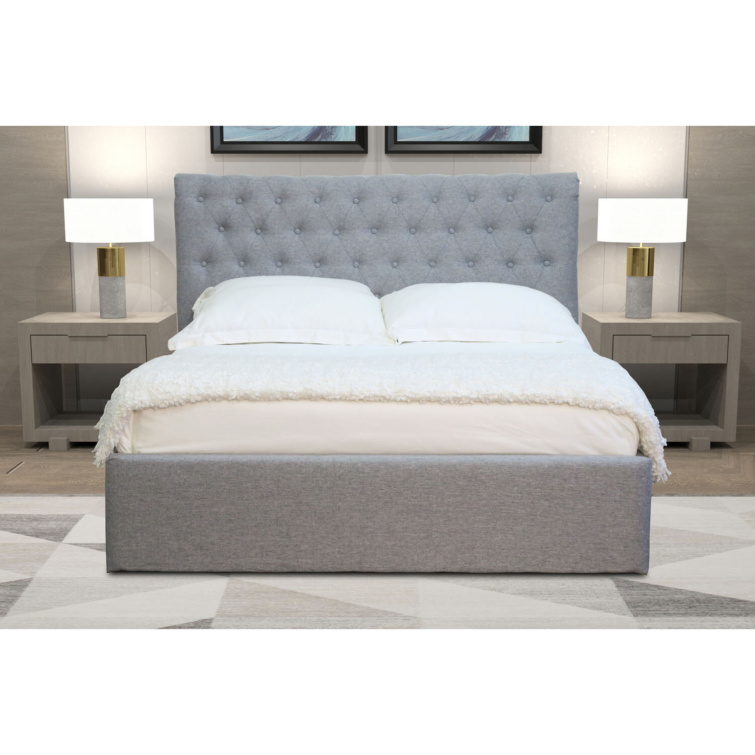 The Harper ottoman bed: understated elegance meets practical storage. Its grey fabric upholstery, covering both headboard and base, complements any bedroom décor. The cleverly concealed ottoman storage provides ample space for bedding or seasonal clothing, keeping your room clutter-free. Crafted from durable yet affordable materials, this bed offers high-end style without the high-end price tag. Simple to assemble, it promises comfortable nights from the very first use.
