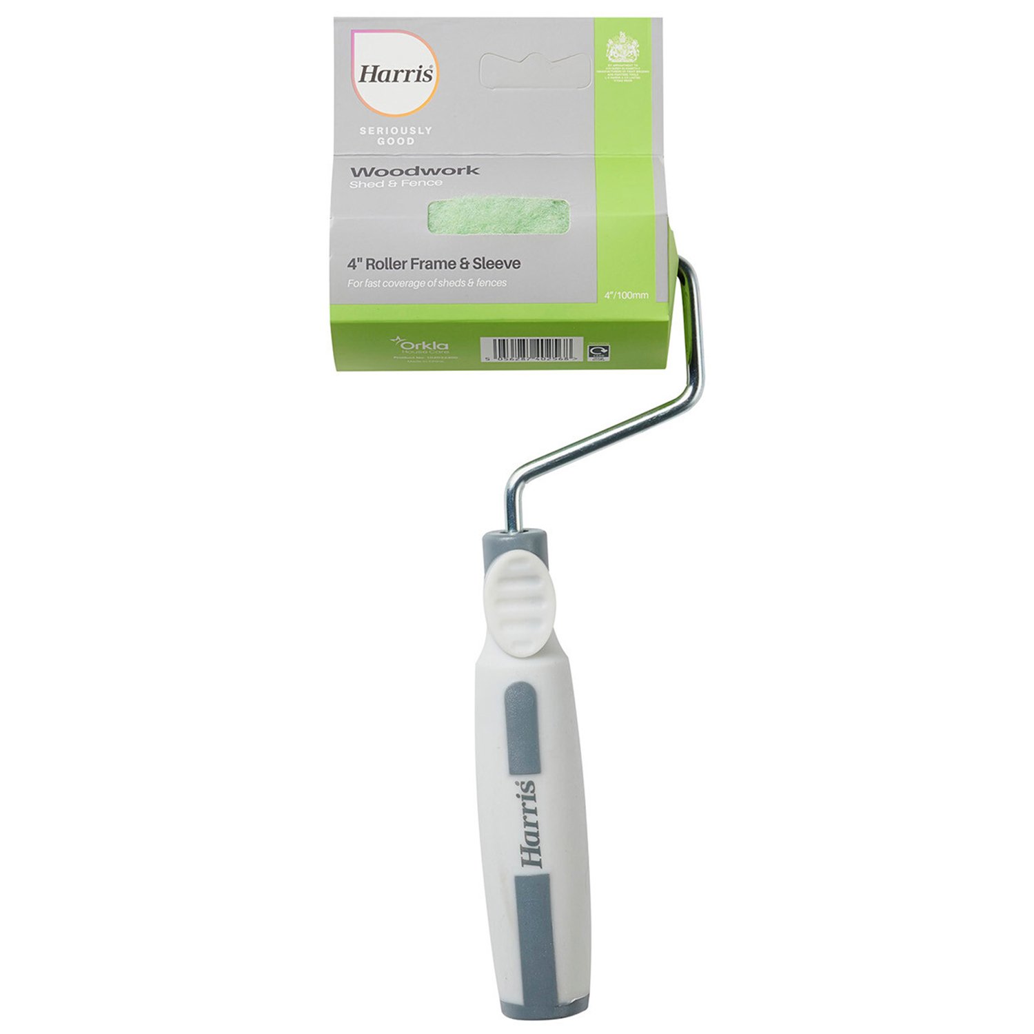 The Harris Seriously Good Exterior Frame & Sleeve Roller delivers professional results on exterior woodwork. Perfect for all exterior wood care paints, it creates a neat finish on sheds, fences, and decking. For best results, rub the roller sleeve with a clean hand before use to remove dust, do not wet.