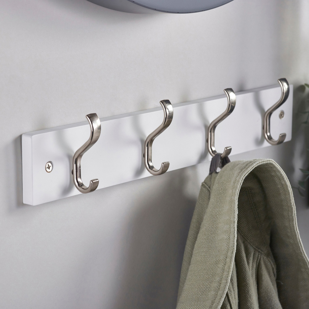 Headbourne Satin Nickel and White 4 Hook Coat Rail