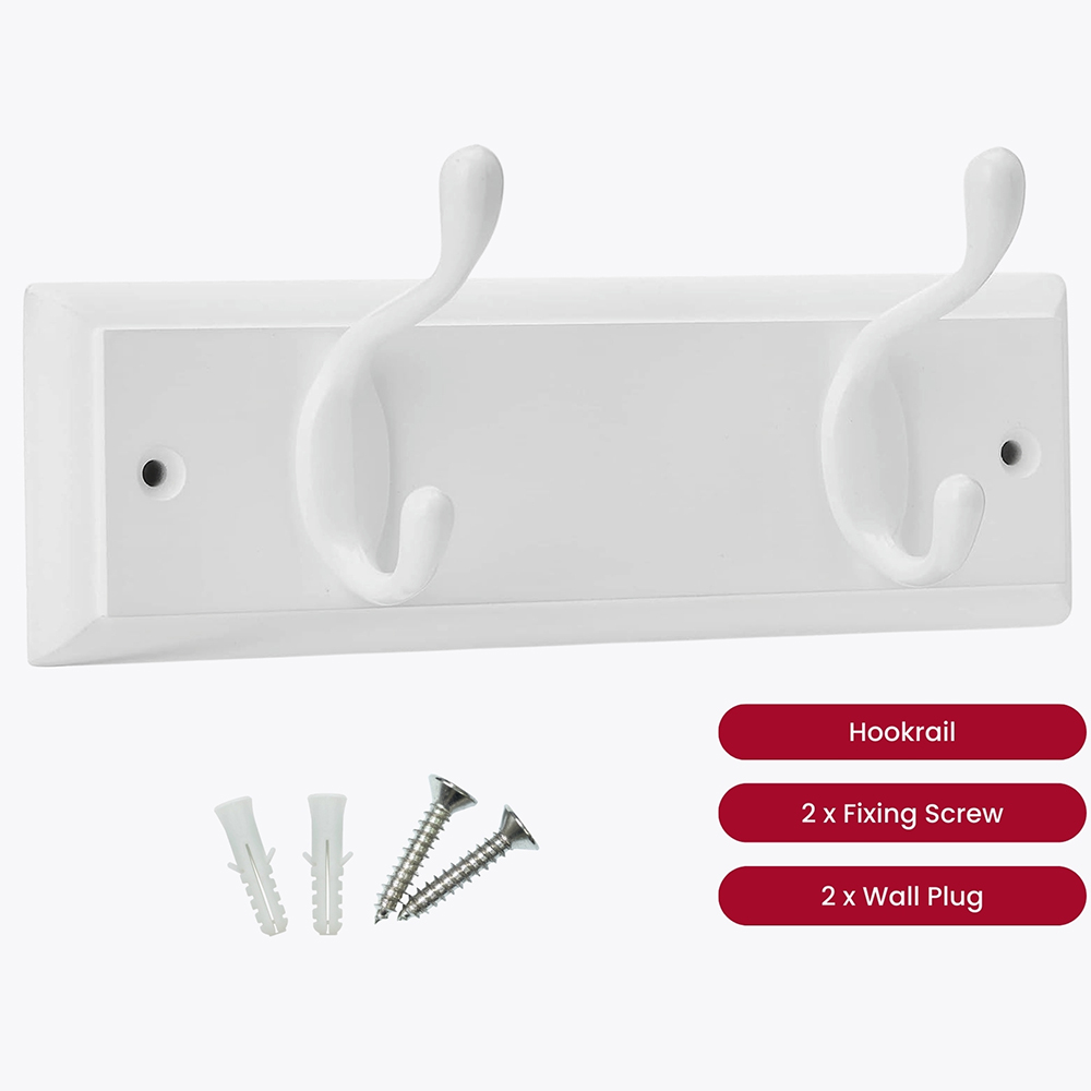 This wall-mounted coat rack is the perfect solution for keeping your entryway clutter-free. Two heavy-duty, double-tiered metal hooks, each holding up to 3.4kg, provide ample space for coats and bags. Made from eco-friendly wood from responsibly managed forests, this rack offers sustainable style. Ideal for hallways, bedrooms, or offices, it keeps coats, hats, and scarves neatly organized while freeing up floor space. Measuring 22.5cm (L) x 9.5cm (H) x 7.5cm (D), it features hooks spaced 11.2cm apart and mounting holes 16cm apart for versatile placement. Pre-assembled and including all necessary fixings, installation is quick and easy.
