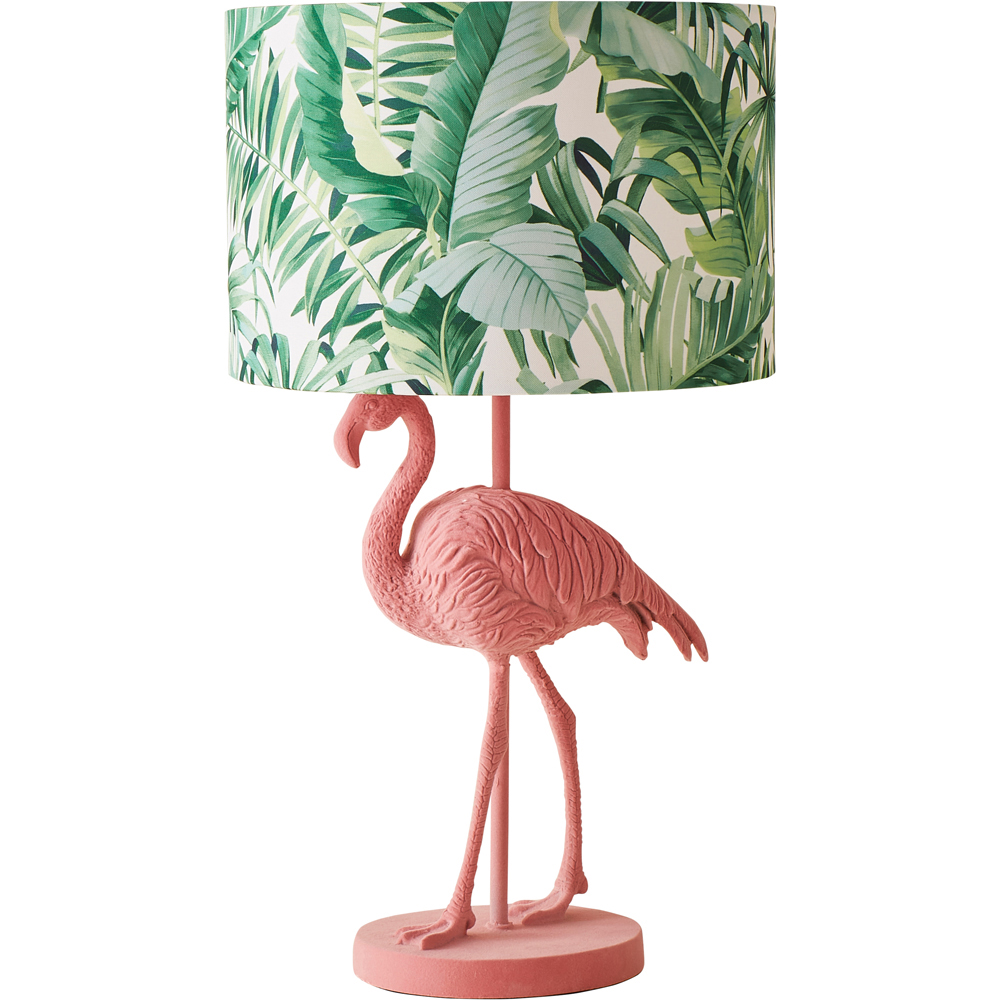 ValueLights Flo Jungle Shade Pink Velvet Flamingo LED Table Lamp