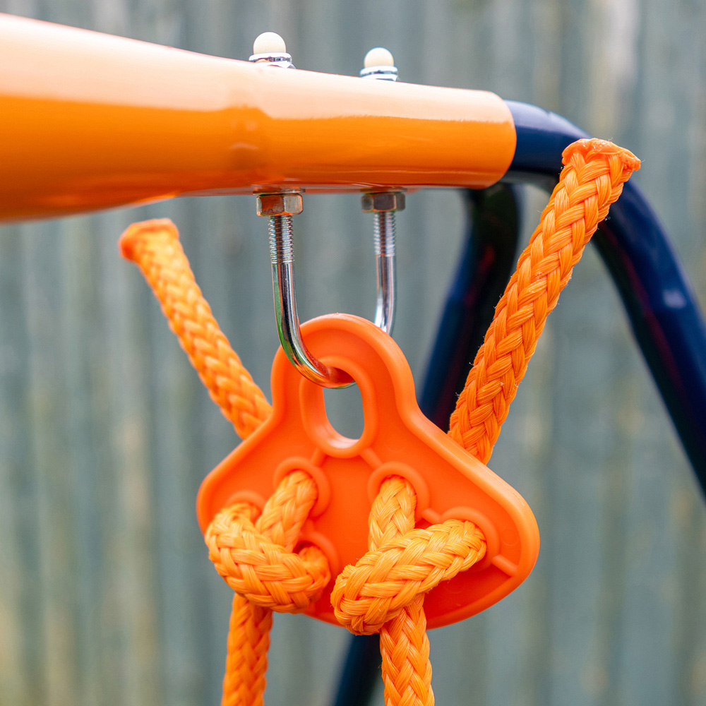 Safety is at the forefront of this swing's design, featuring a 5-point safety harness, a full fabric lower body surround, and high back support, ensuring your child is securely enveloped during playtime. As they grow, the adjustable soft-touch ropes can be tailored to fit their size and confidence levels. High-tensile allen key fittings guarantee sturdy assembly, while the swing's dimensions of H119 x W115 x L110cm provide ample space for comfortable swinging.