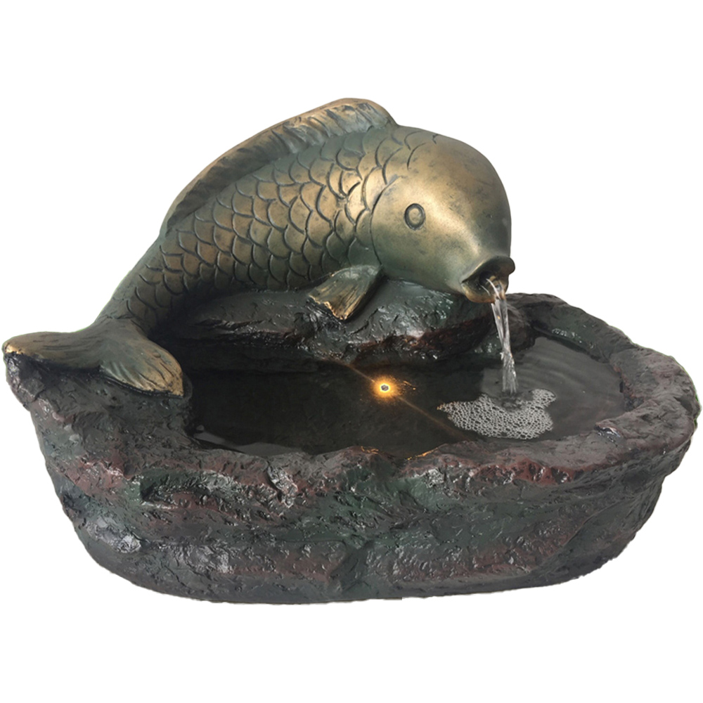 Elevate your outdoor space with this Heissner Fish Water Feature. Its modern design, crafted from a lightweight yet durable polystone that convincingly mimics natural stone, makes a statement. A five-meter pump cable circulates water, introducing the soothing sounds of a tranquil water feature to your garden. Complete with an integrated LED light for added ambiance.