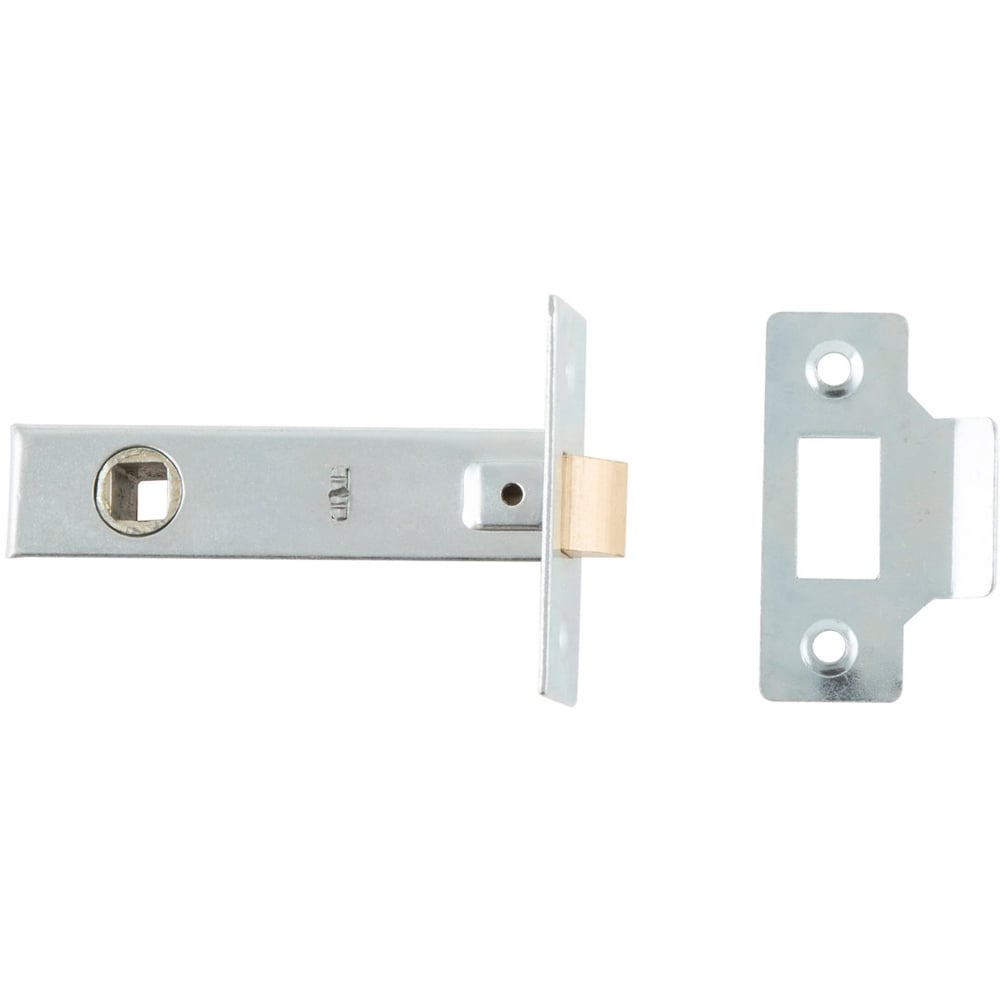 Upgrade your home with this 3-inch bolt-through tube latch, featuring a sleek nickel-plated chrome finish. Constructed from strong metal for secure fastening of doors and other heavy objects, installation is simplified with included screws.