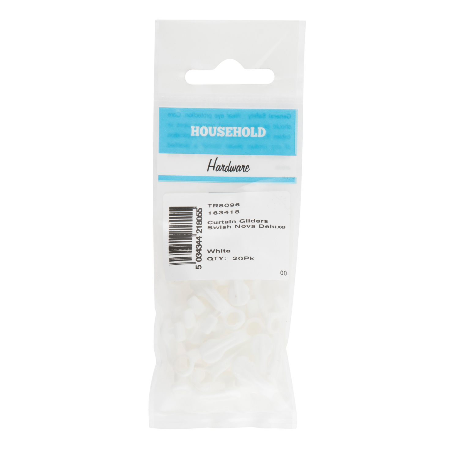 These standard sized Pack of 20 Nova Deluxe Swish Curtain Gliders make hanging your curtains a breeze. Simply plug into the curtain runner and hang.