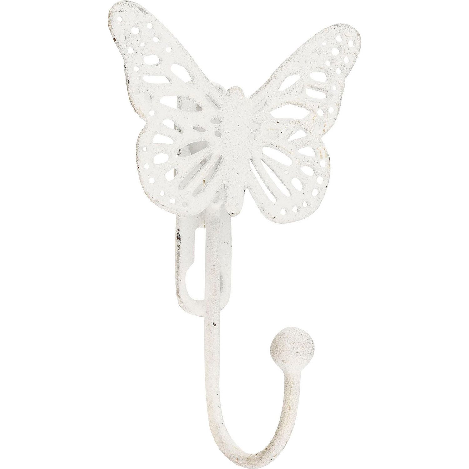 Enhance a little girl's bedroom or any elegantly floral space with this charming Butterfly Hook. A delicate white metal butterfly adds a touch of natural beauty. Ideal for hanging jackets or dressing gowns, this easily installed hook is perfect for the back of a door.