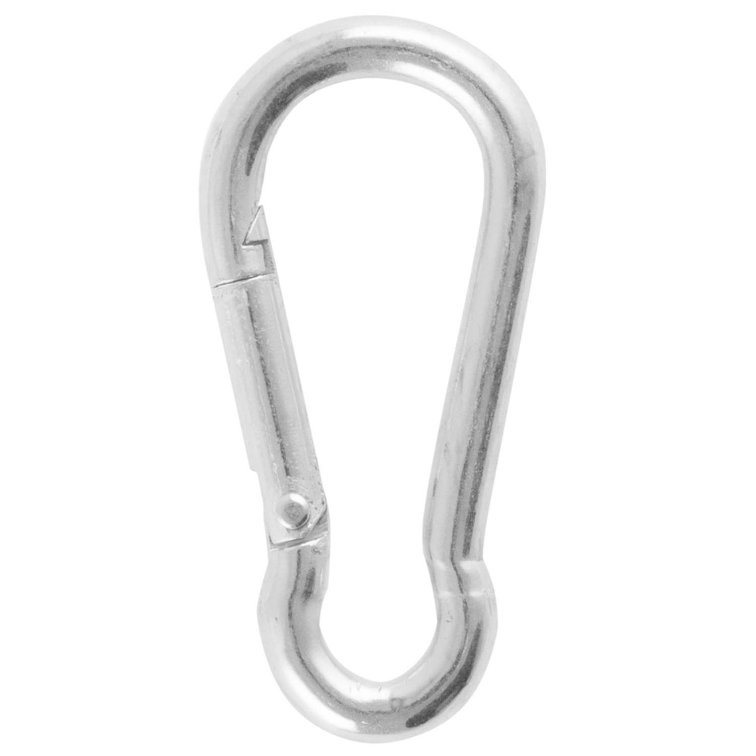 This Snap Hook is carabiner style for use in the garage or shed to hang tools or cables from. It is zinc plated for corrosion resistance.