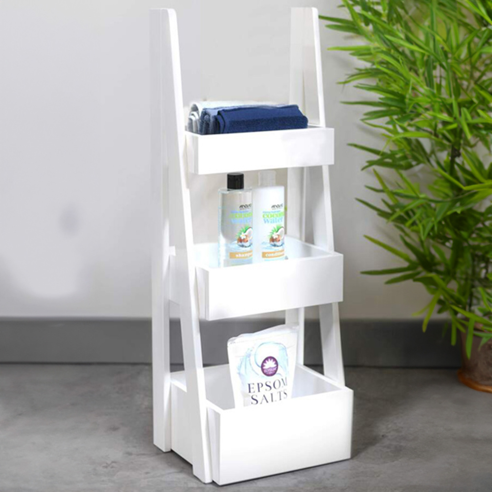 This stylish three-tiered caddy offers a space-saving solution for smaller bathrooms. Its contemporary high-gloss finish provides a sleek look, perfect for storing toiletries, cleaning products, hair products, and more. The ample storage across three tiers keeps your bathroom essentials organised. Its slim design allows for neat placement in any bathroom.