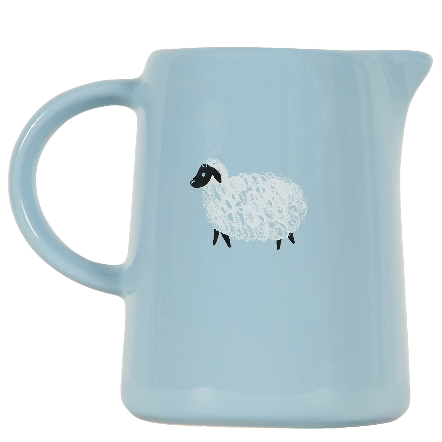 Bring a touch of pastoral charm to your table setting with the Highland Flock Large Jug. Featuring an endearing sheep illustration set against a serene blue backdrop, this jug is ideal for adding a homely feel to any kitchen. Perfectly sized for serving refreshing juice, milk, or water, its vibrant coloured handle enhances its appeal. Coordinate with other items from the Highland Flock collection for a cohesive and delightful range.