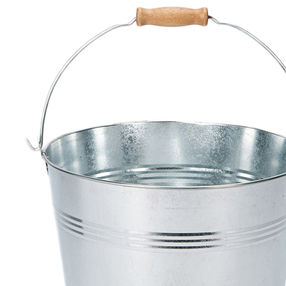 Highlands Homeware 18L Galvanised Bucket. Durable galvanised metal construction for long-lasting use. Features a sturdy wooden handle for comfortable carrying. Ideal for storing garden tools, and transporting water and soil. Resistant to corrosion. Suitable for heavy use.
