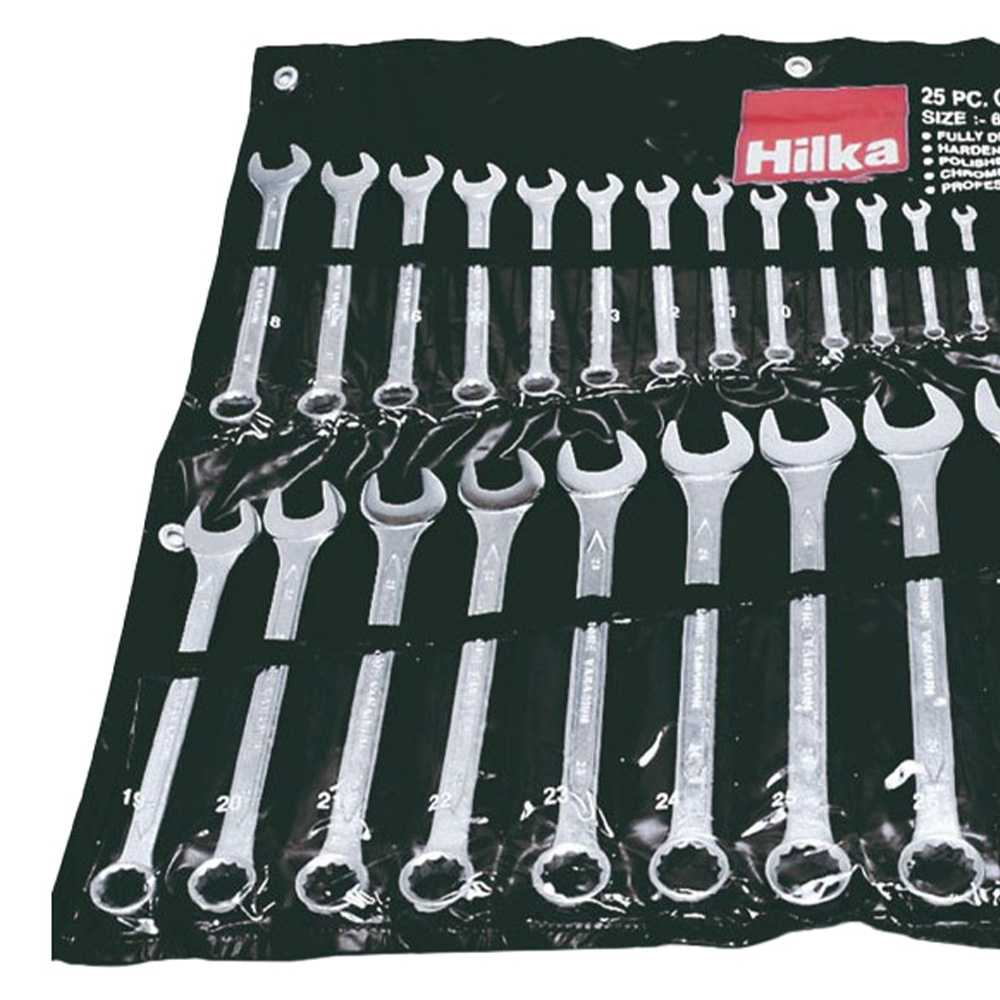 This 25-piece spanner set is a must-have for any toolbox. Each full-length chrome vanadium steel spanner boasts polished jaws, heat treated for strength and precision machined for accuracy. The set includes sizes from 6mm to 32mm (6, 7, 8, 9, 10, 11, 12, 13, 14, 15, 16, 17, 18, 19, 20, 21, 22, 23, 24, 25, 26, 27, 28, 30, 32mm) and comes neatly packaged in a roll-up wallet and display box for easy storage and portability.