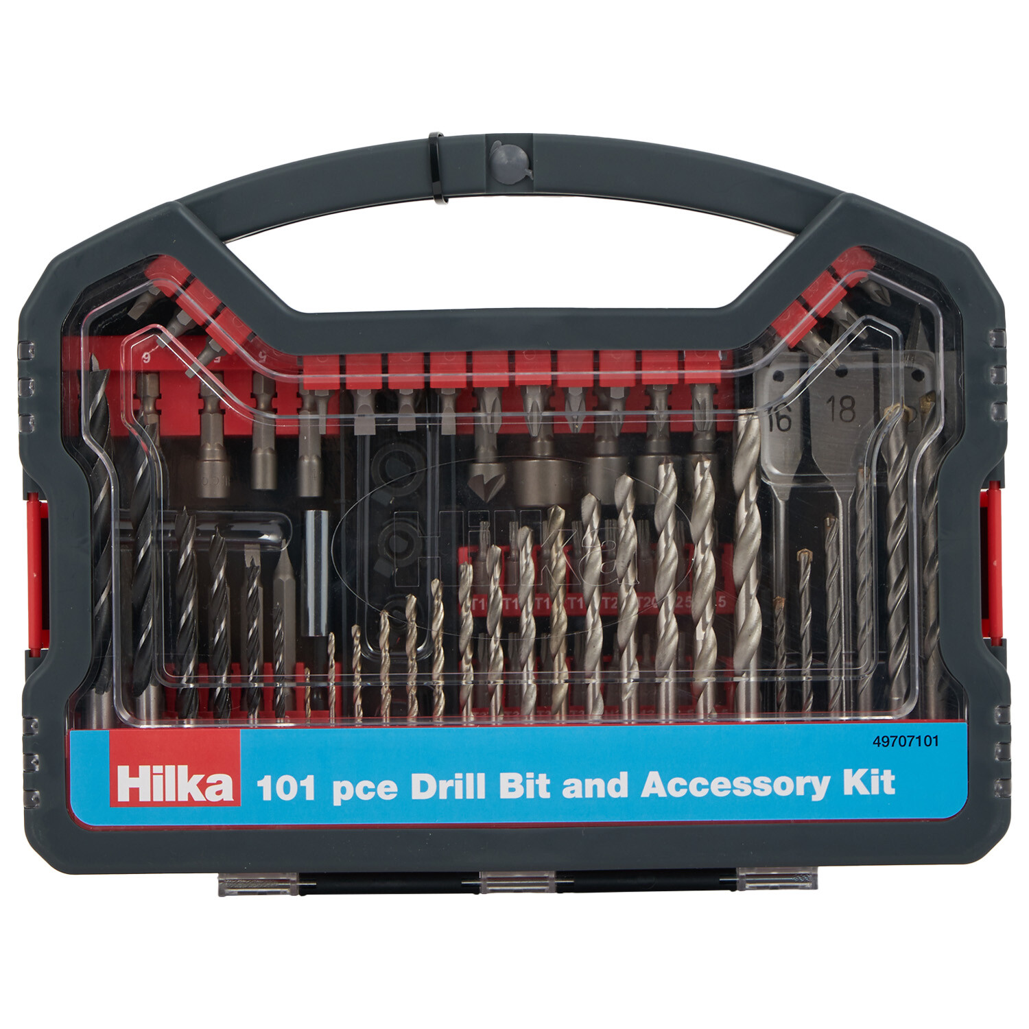 Make a practical addition to your toolkit with this Hilka Drill Bit and Accessory Kit. It includes popular sizes and bits which are compatible with both power tools and hand tools for a wide variety of tasks. Supplied in a robust plastic carry case for easy storage, they're ideal for drilling and screw-driving in wood, masonry and metal.