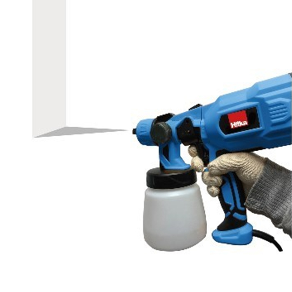 The Hilka 550W Electric Paint Spray Gun makes quick work of any DIY painting project. Perfect for large surfaces, inside or out – walls, ceilings, fences, decking – you name it. This handheld sprayer delivers a professional finish faster than brushes or rollers, thanks to its adjustable spray pattern and paint flow rate (100-450ml/min). With an 800ml paint capacity, you'll spend less time refilling. Cleanup is a breeze with the easy-clean nozzle and included viscosity measuring cup. The 2.0m cable provides ample reach, and the 32,000 no-load speed ensures efficient paint application. Power: 550W, Airflow rate: 160ml/min, Voltage/Frequency: 230-240V~50Hz.