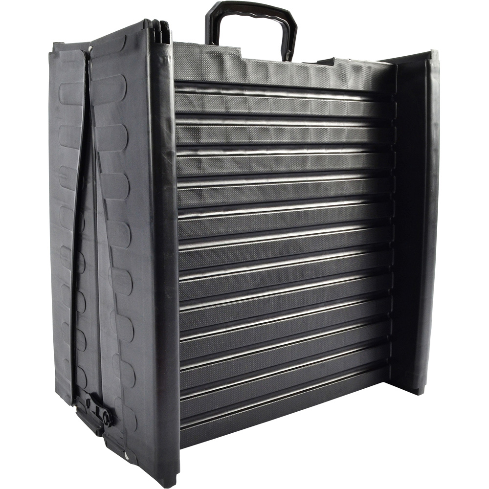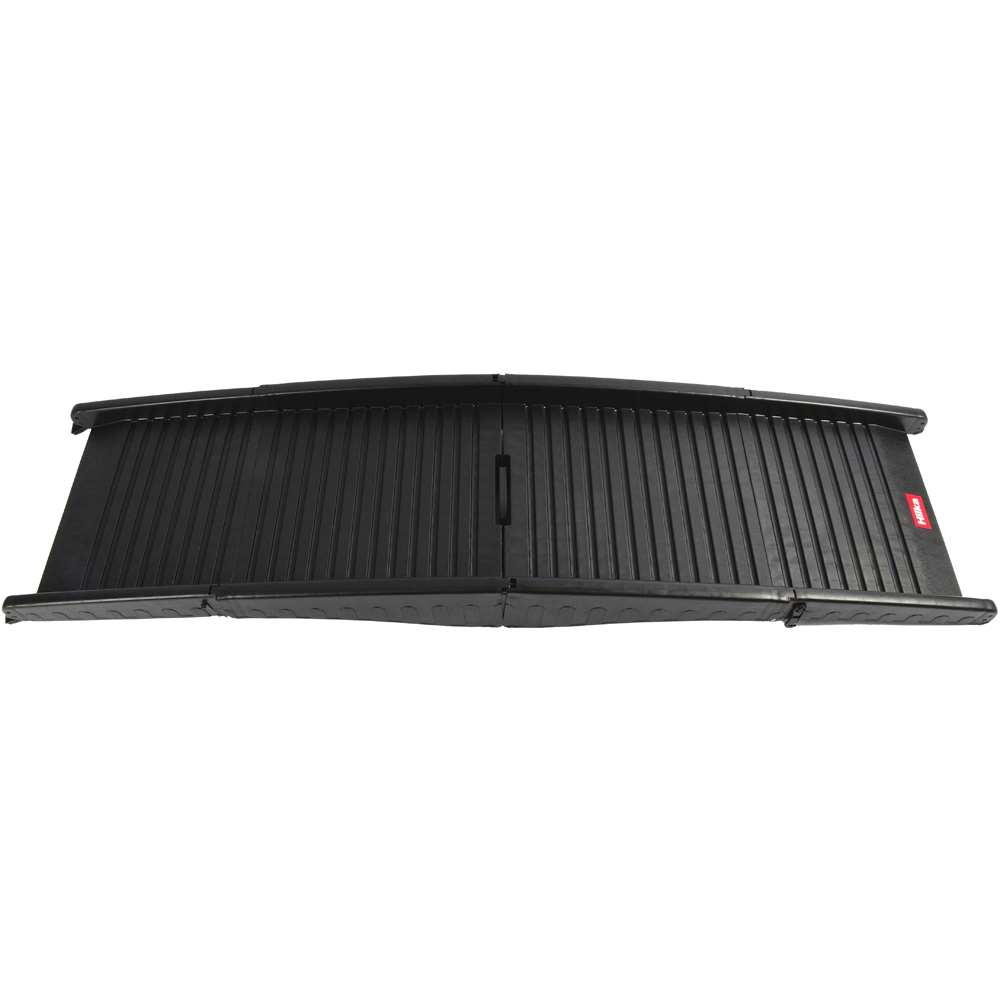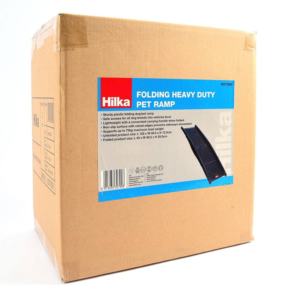 Give your pet the smoothest ride ever! Introducing the Hilka Folding Heavy-Duty Pet Ramp. Built from robust plastic for lasting reliability, this ramp provides a safe and gentle way for all breeds to access vehicles, especially those tricky boots. Its lightweight design makes it a breeze to carry and handle, and a convenient carrying handle neatly tucks away when folded. The non-slip surface and raised edges keep your furry friend secure, preventing any sideways slips. Supporting a hefty 75kg, this ramp offers ample space at 12.5 x 40.5 x 152cm when unfolded. For easy storage, it folds down to a compact 25.5 x 40.5 x 43cm, perfect for your car or home.