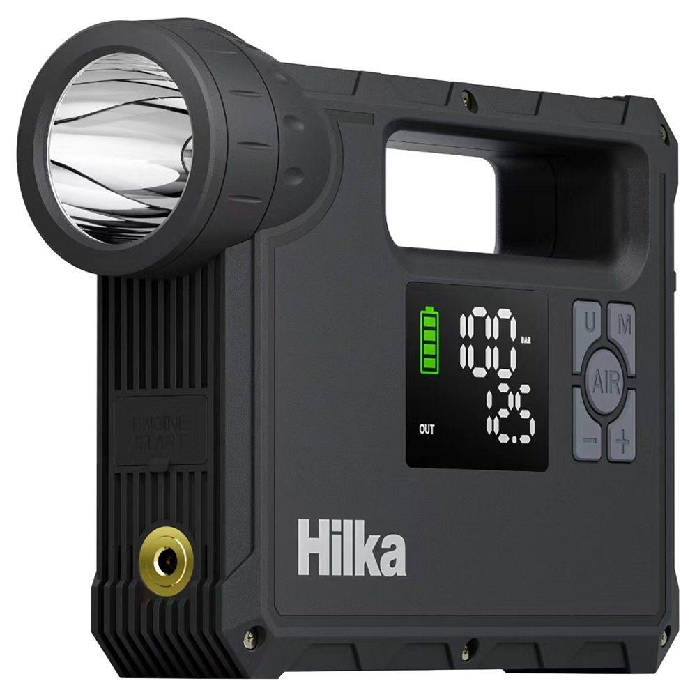 The Hilka 800amp Jump Starter: Your roadside companion for any eventuality. This compact and lightweight powerhouse tackles a multitude of emergencies. Jump-start petrol engines up to five litres and diesel engines up to three litres with ease. Beyond jump-starting, it boasts a cordless tyre inflator with a precise digital display for accurate inflation, ensuring you',re back on the road swiftly. Illumination is covered by a powerful 10-watt LED flashlight and a 3-watt reading light – perfect for roadside assistance in low light conditions. Its 10,000mAh battery provides ample power, delivering a peak current of 800 amps and a starting current of 400 amps. Smart cables offer additional protection during use. Conveniently sized at 15.9 x 10.7 x 6.2cm and weighing only 610 grams, it',s easily stored in your vehicle. A full charge takes approximately five hours. Note: Not for commercial use.