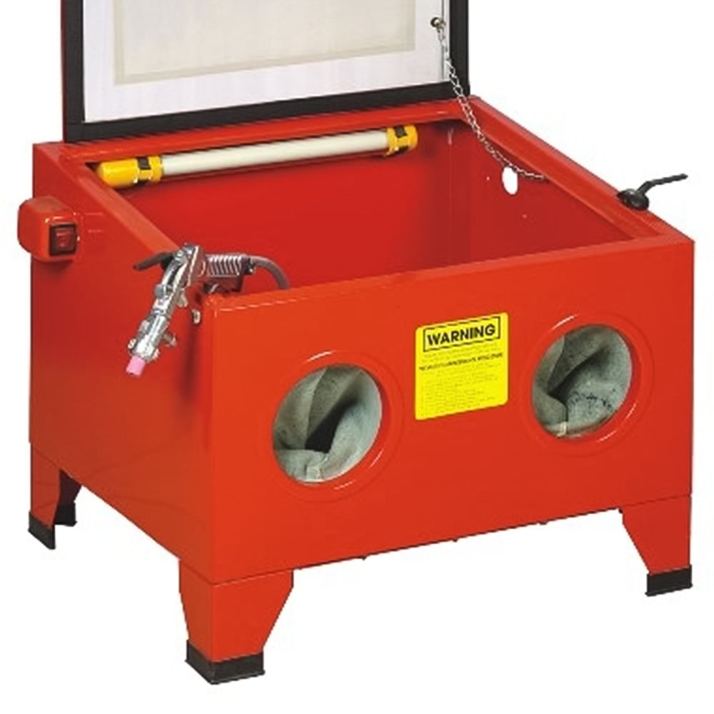 Clean, powerful, and efficient, the Hilka heavy-duty blast cabinet tackles most metal cleaning jobs with ease. Use aluminium oxide for steel or glass beads for aluminium. The cabinet features a 12-volt internal light and an air gun equipped with four nozzles (4, 5, 6, and 7mm). A top viewing screen offers both visibility and protection during operation. It',s also compatible with a vacuum extractor for a complete cleaning solution. The cabinet requires 80-120psi air pressure and weighs 19kg. Dimensions are 490 x 580 x 480mm.