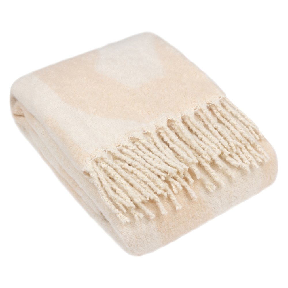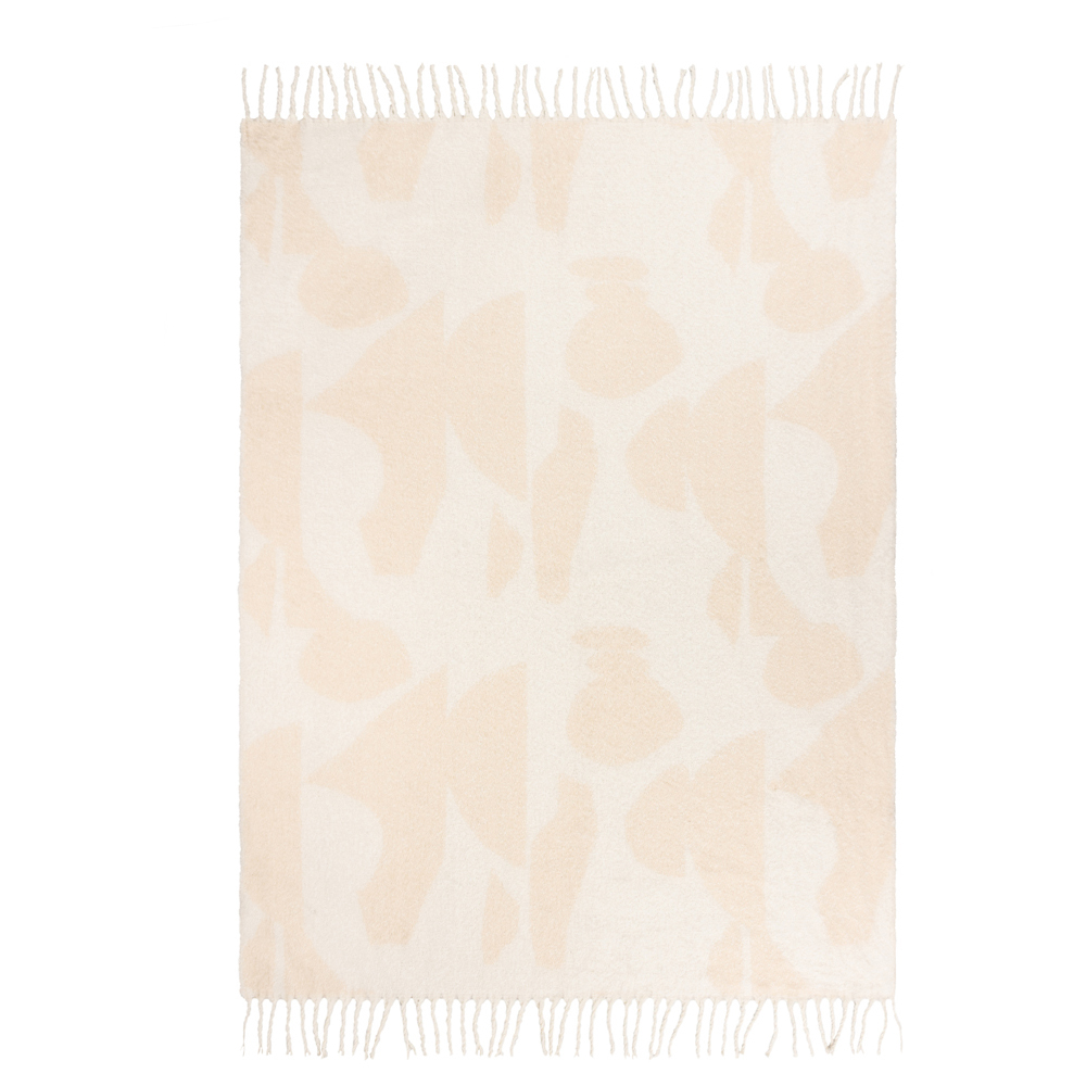 Experience modern minimalist art with the Hoem Meta Marshmallow Throw. Its fluid abstract jacquard shapes, woven into incredibly soft faux mohair, create a stunning piece for any neutral interior. Twisted tassel edging on both sides adds a touch of understated elegance. This luxuriously soft and durable throw measures 130 x 180cm, perfect for adding warmth and style to your space.