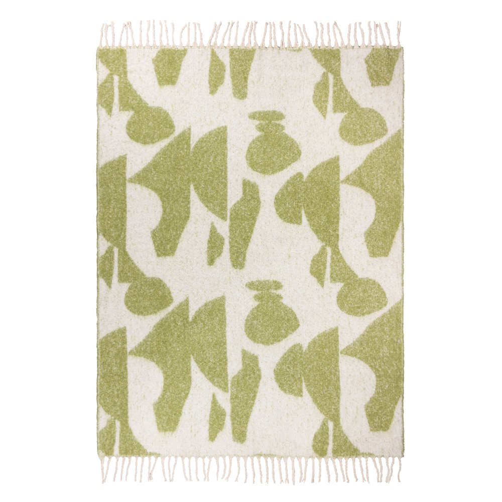 Experience modern minimalist style with the Hoem Meta Olive Green Jacquard Tasselled Throw. Crafted from incredibly soft faux mohair, this throw features fluid abstract jacquard shapes for a unique look. The twisted tassel edging on both sides adds a touch of elegant detail, perfect for enhancing any neutral space. Enjoy both its visual appeal and luxurious softness—a durable and comfortable addition to your home. Measures 130 x 180cm.