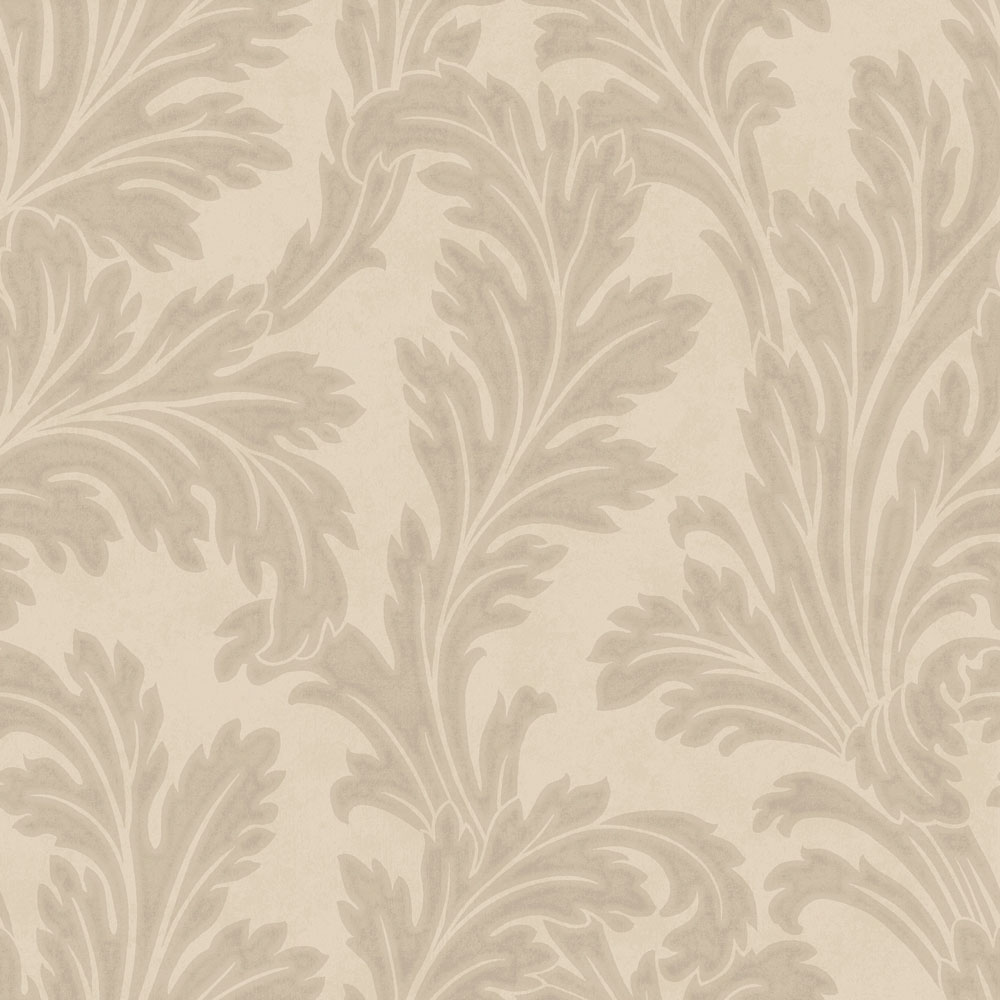 Transform your space with the Holden Acanthus Beige Wallpaper a design that exudes classical elegance and timeless charm. Featuring large trailing acanthus leaves, this wallpaper evokes a sense of sophistication. The emboss mimics the feel of woven fabric, with subtle ridges and contours that add depth and dimension, creating a rich and textured look for any space.
