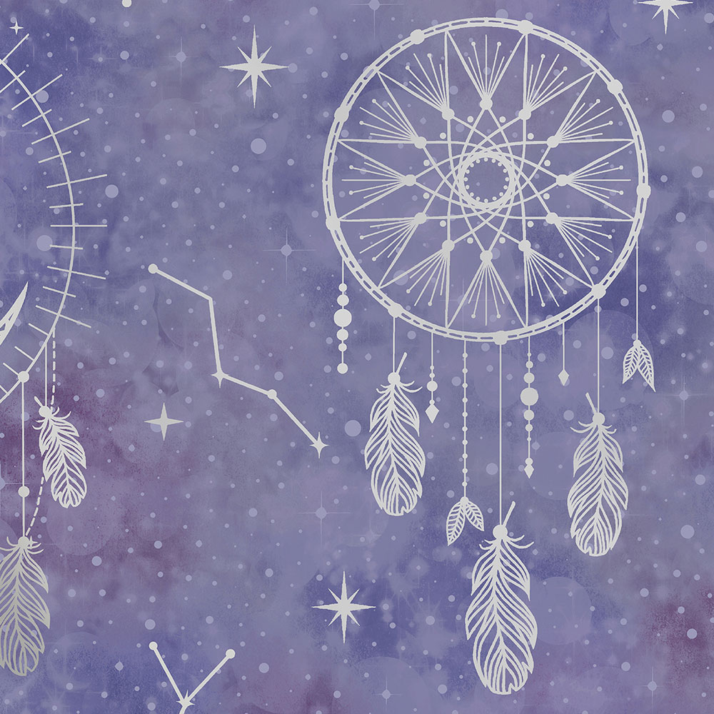 Transform your child',s bedroom into a celestial wonderland with Holden Decor Dreamcatcher Purple Silver Wallpaper. This FSC-certified wallpaper boasts a watercolour backdrop adorned with intricate metallic dreamcatchers, suns, stars, moons, and constellations. Metallic accents shimmer throughout the design, adding a touch of magic. Easy to clean thanks to its spongeable surface, this wallpaper is perfect for any child',s room. Application is paste the paper. Each roll measures 10.05m in length and 53cm in width, with an offset design match and a 53cm/26.5cm repeat. Available in Purple/Silver.